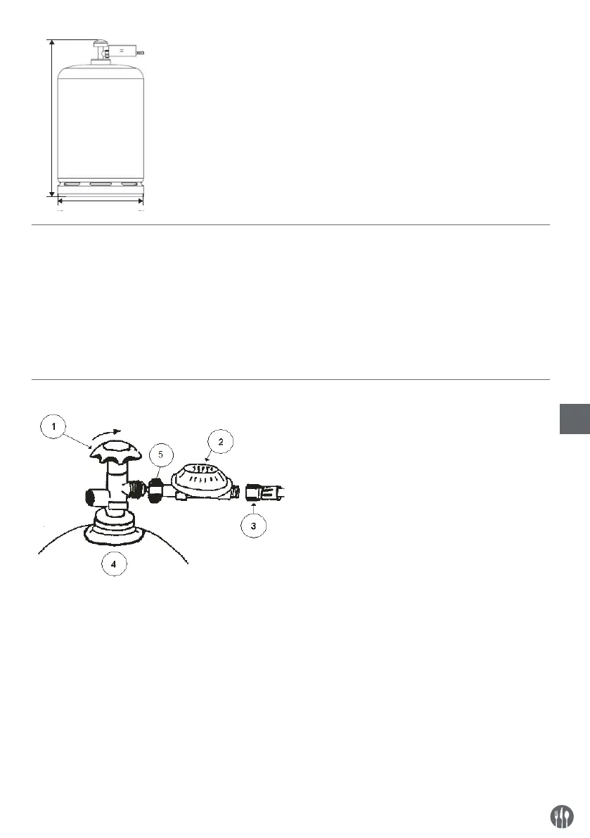 мер баллона (с регулятором) не должен превышать (D)50 x (H) 75