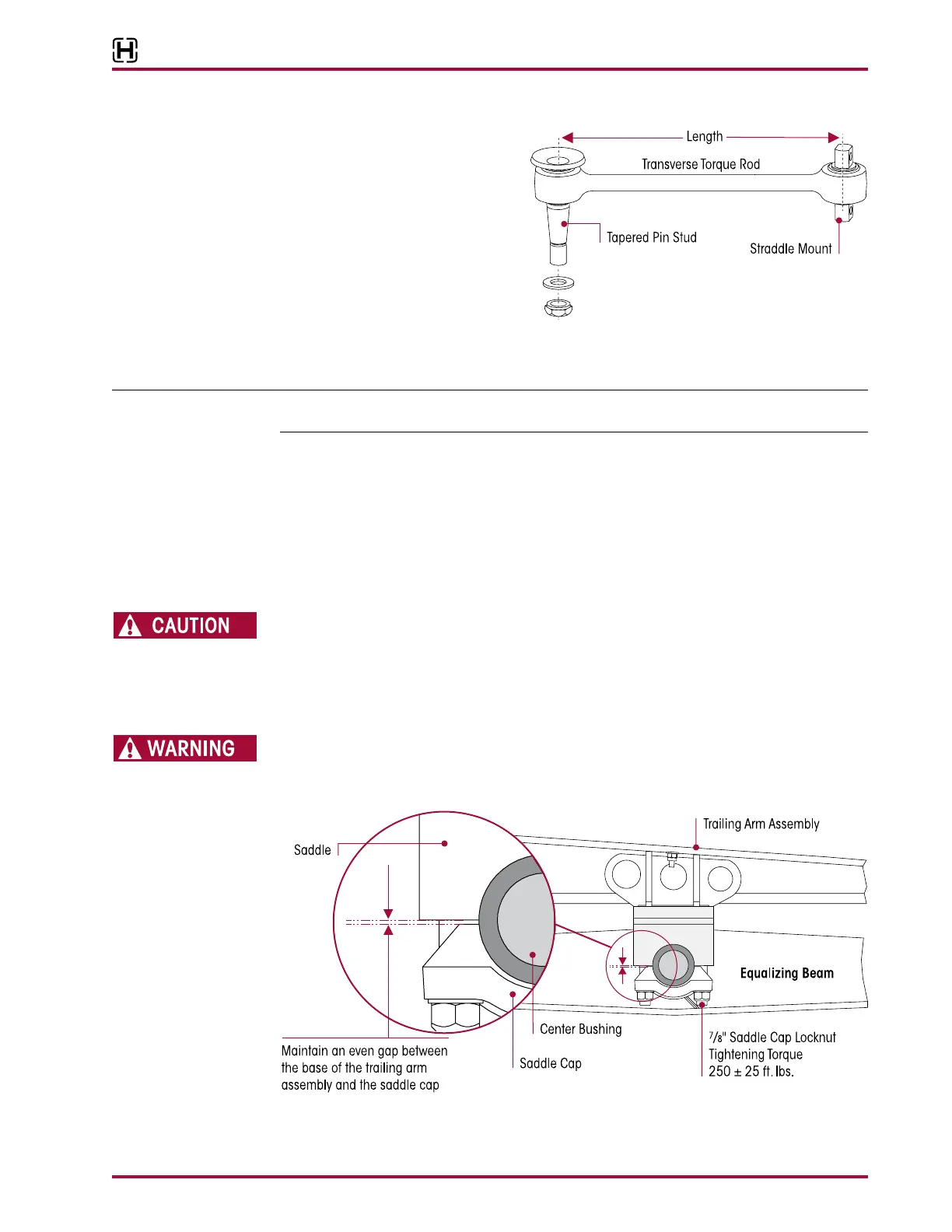 Hendrickson recommends Grade 8 bolts, hardened flat washer and Grade C locknuts be used for