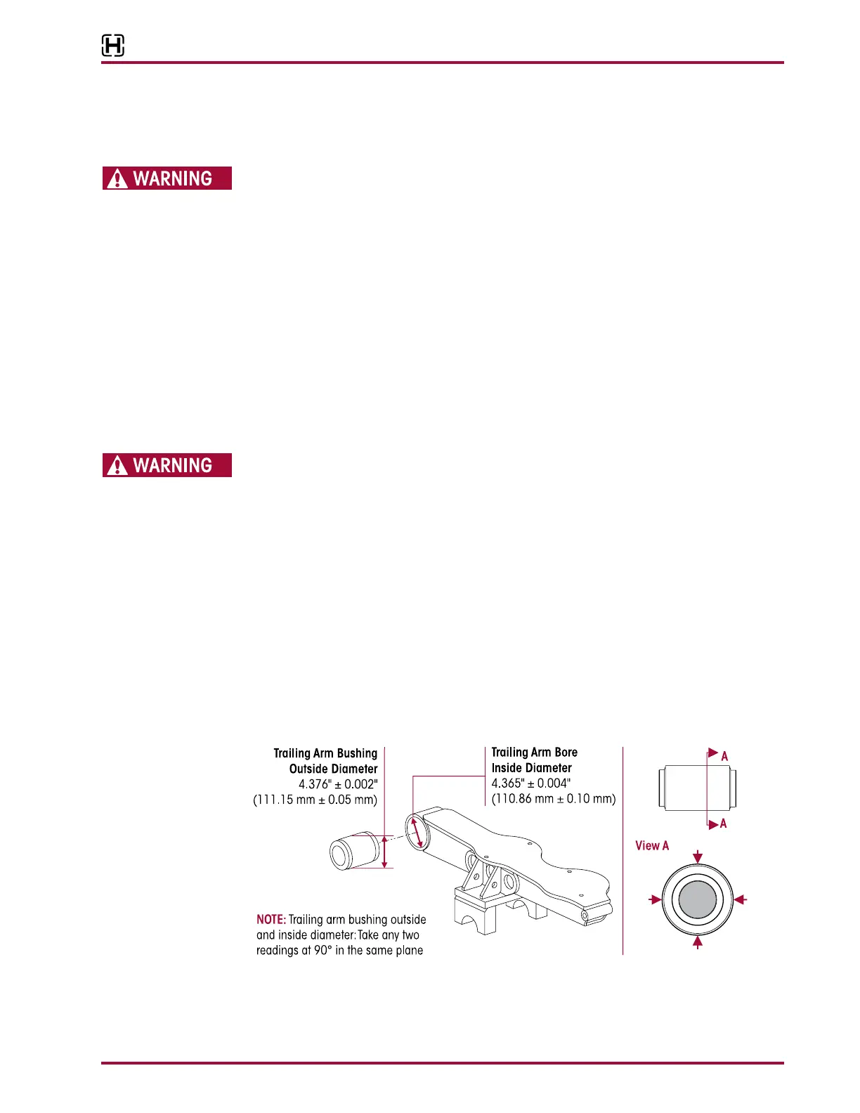 After removing the trailing arm bushings, thoroughly inspect the trailing arm bushing bores. If