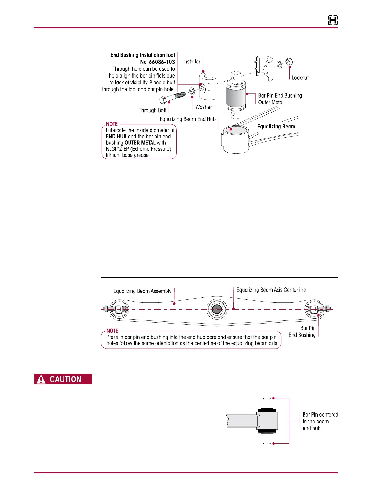 3. Lubricate the equalizing beam end hub inside diameter AND the bar pin end bushing’s