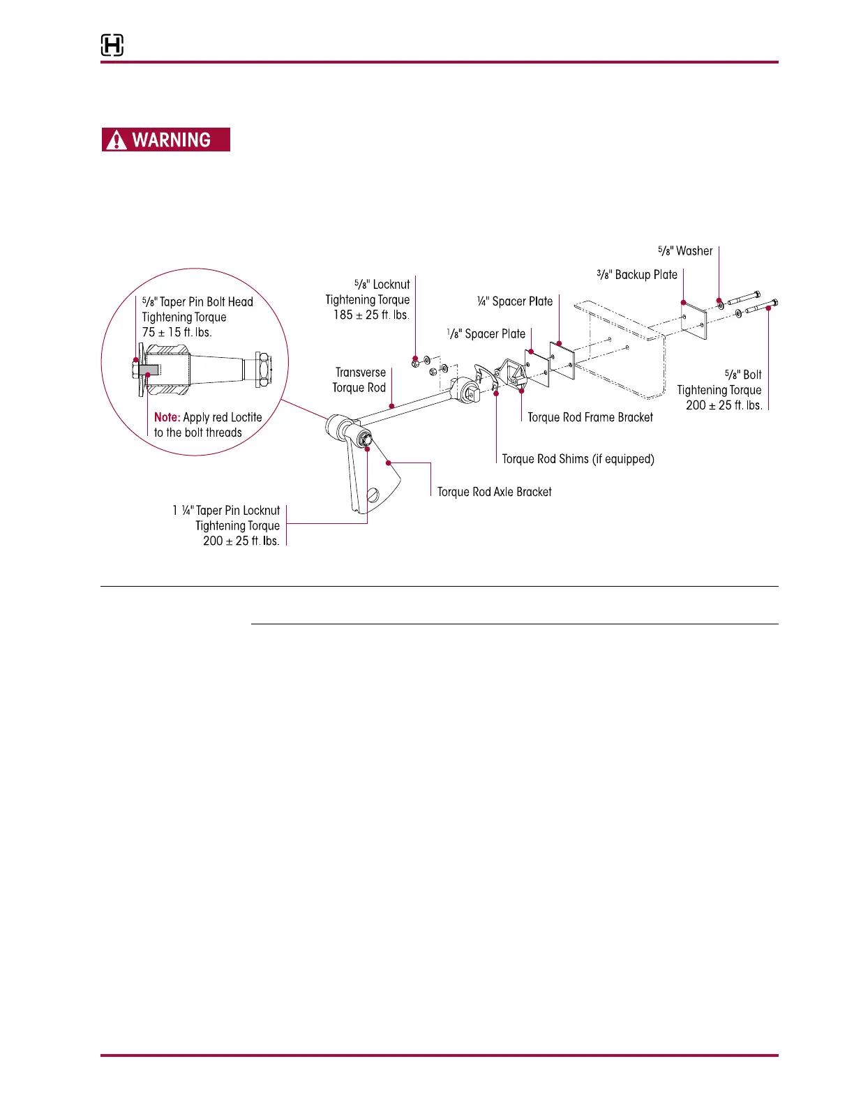 ⁄4" taper pin through the torque rod axle bracket. Install fasteners, tighten