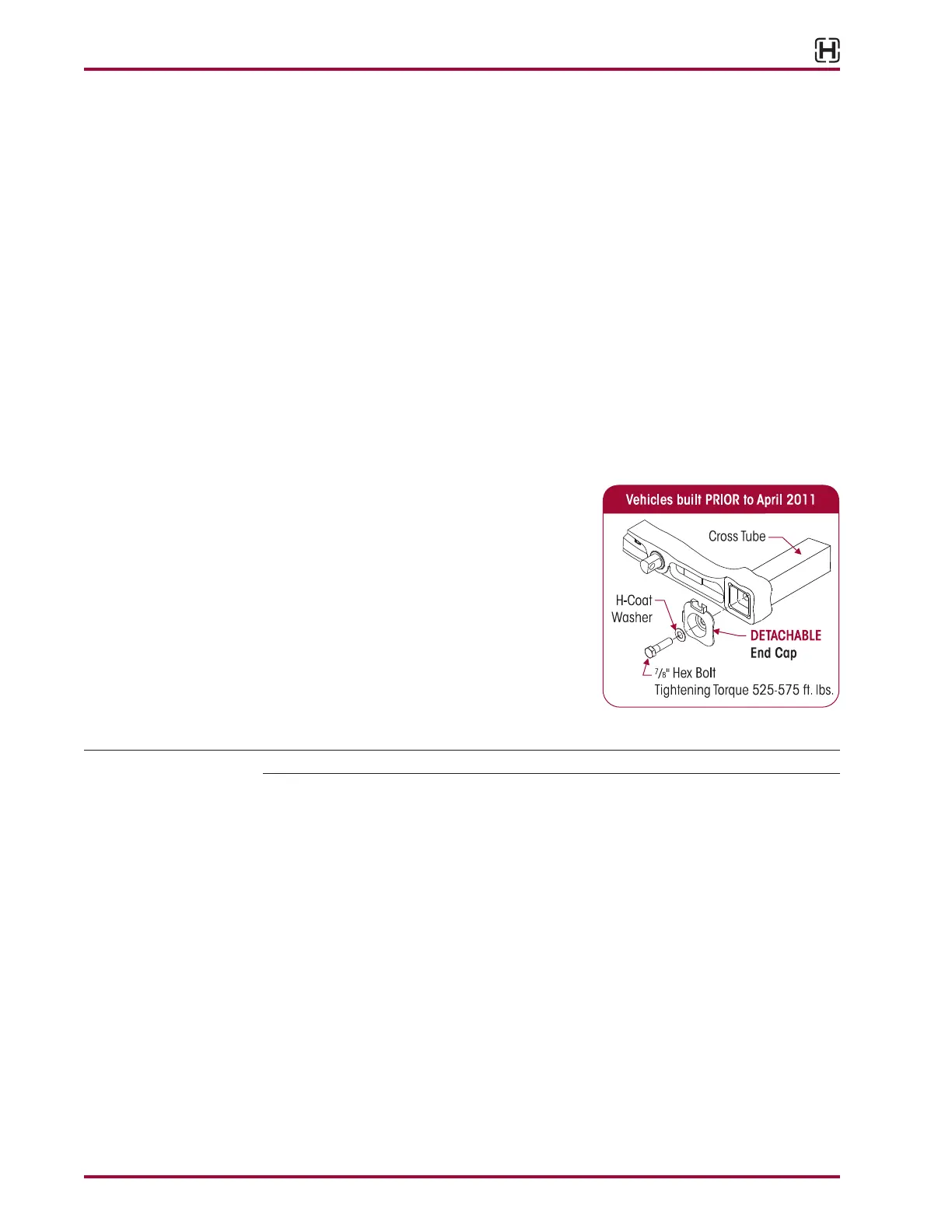 or damage. Verify the support beam / cross tube connection bolts have the proper torque