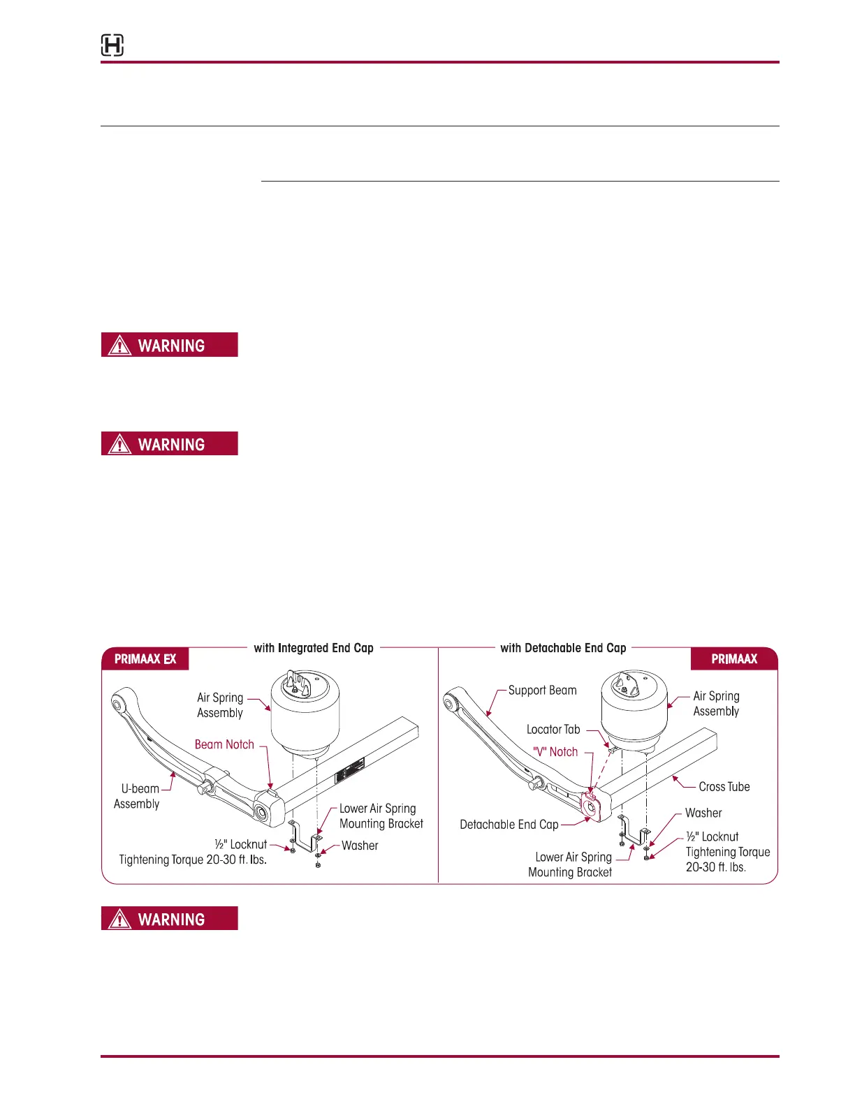5. See additional Air Spring Cautions and Warnings in the Important Safety Notice Section of