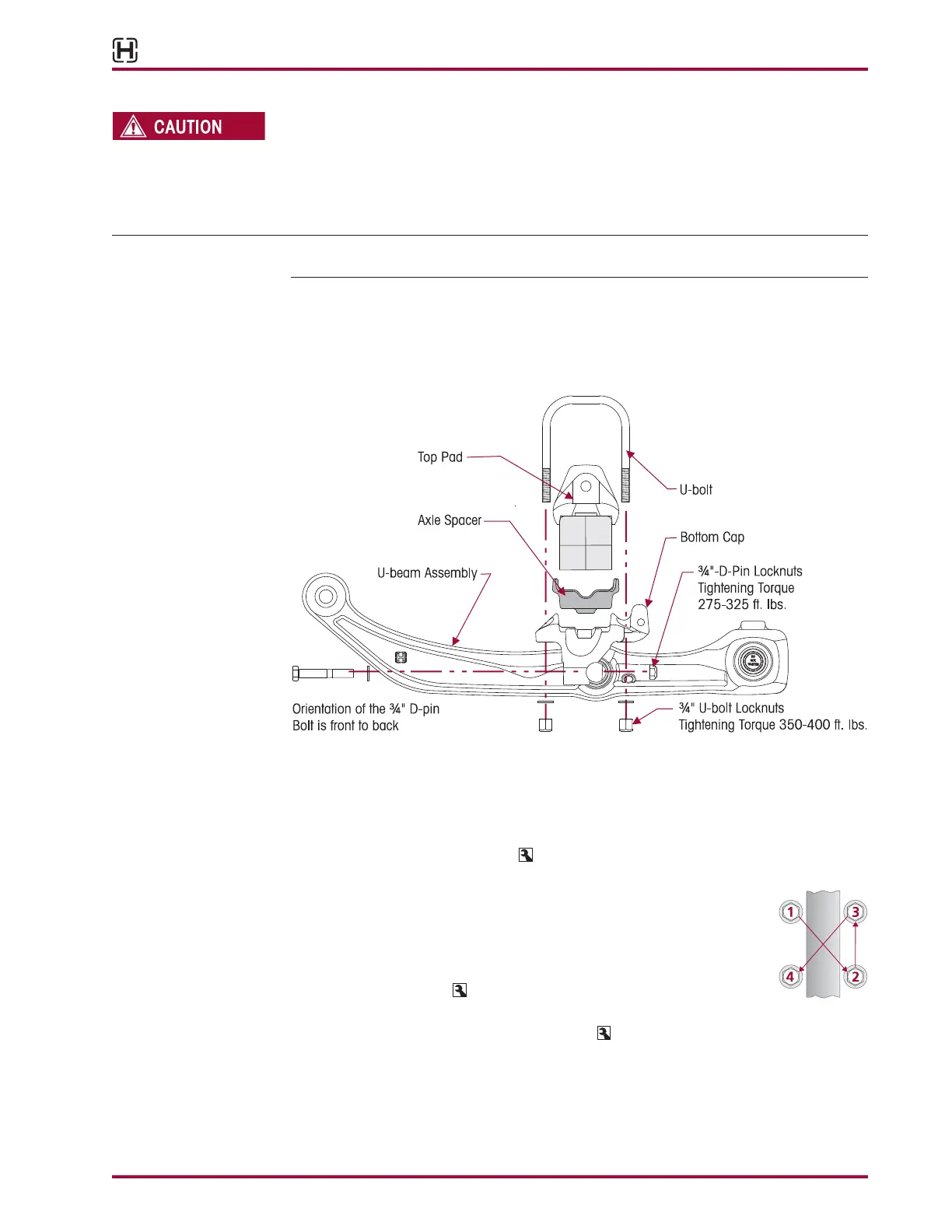 proper torque. DO NOT exceed specified torque on U-bolt locknuts. Tight-