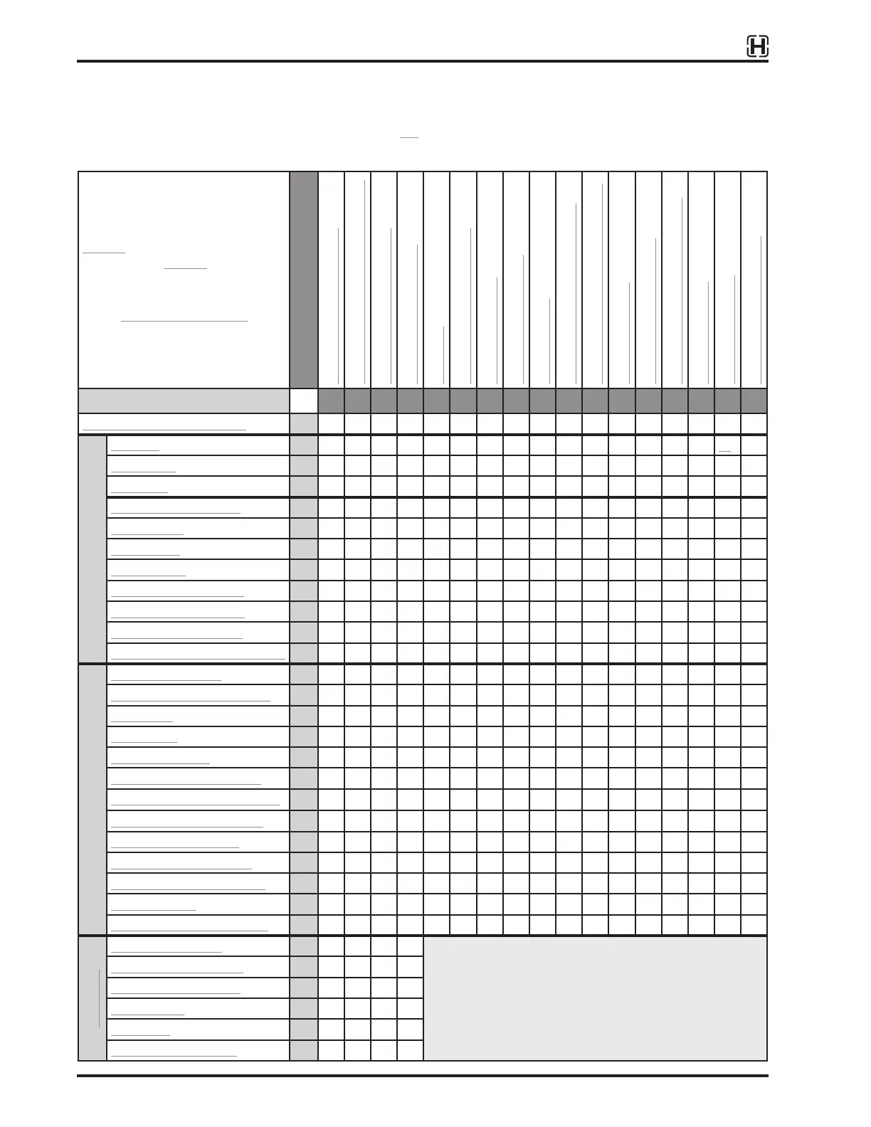 This matrix includes a list of effects (lettered columns) and probable causes (numbered rows) to problems that