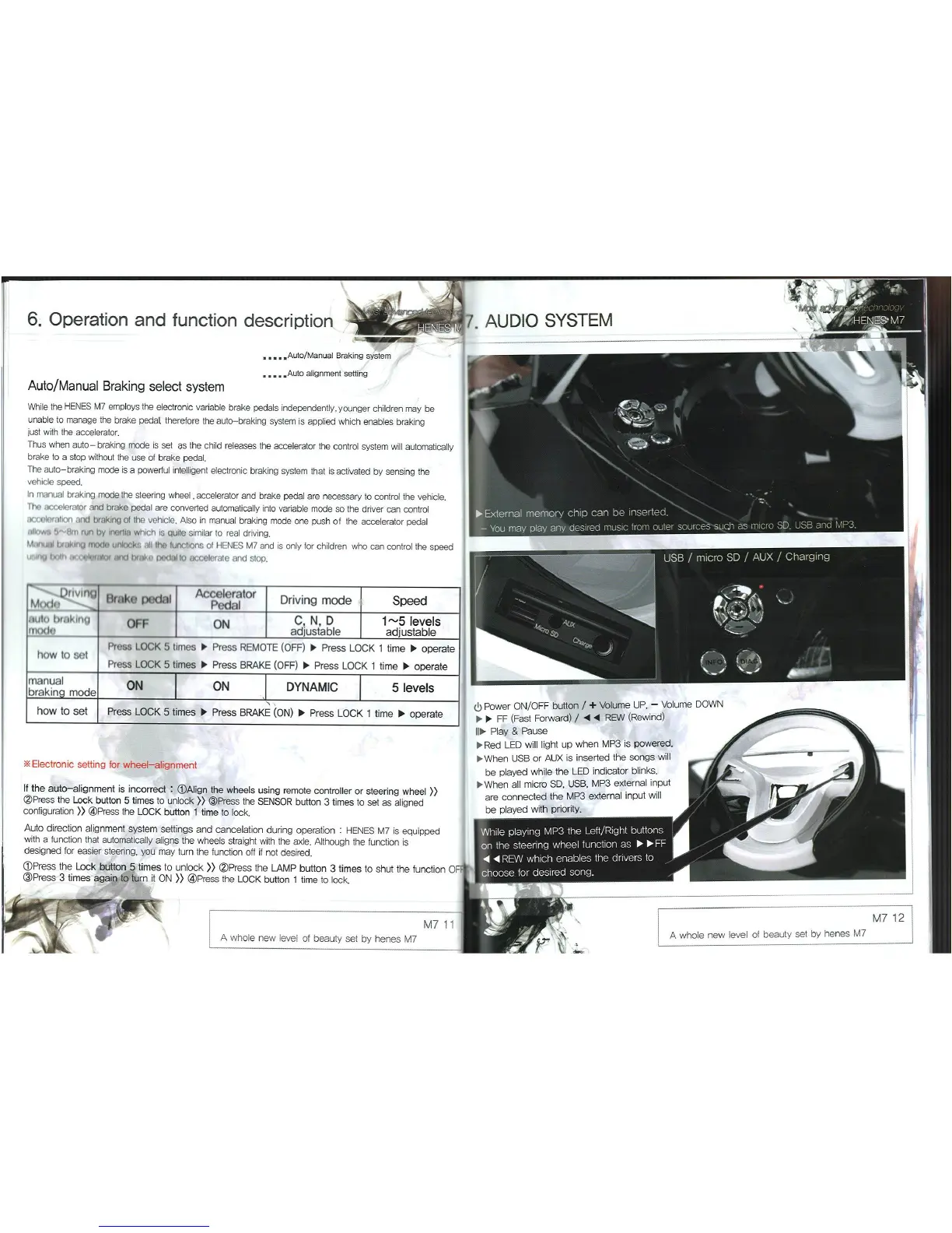 Henes M7 - Audio System and Braking System Selection; Auto and Manual Braking System Setup
