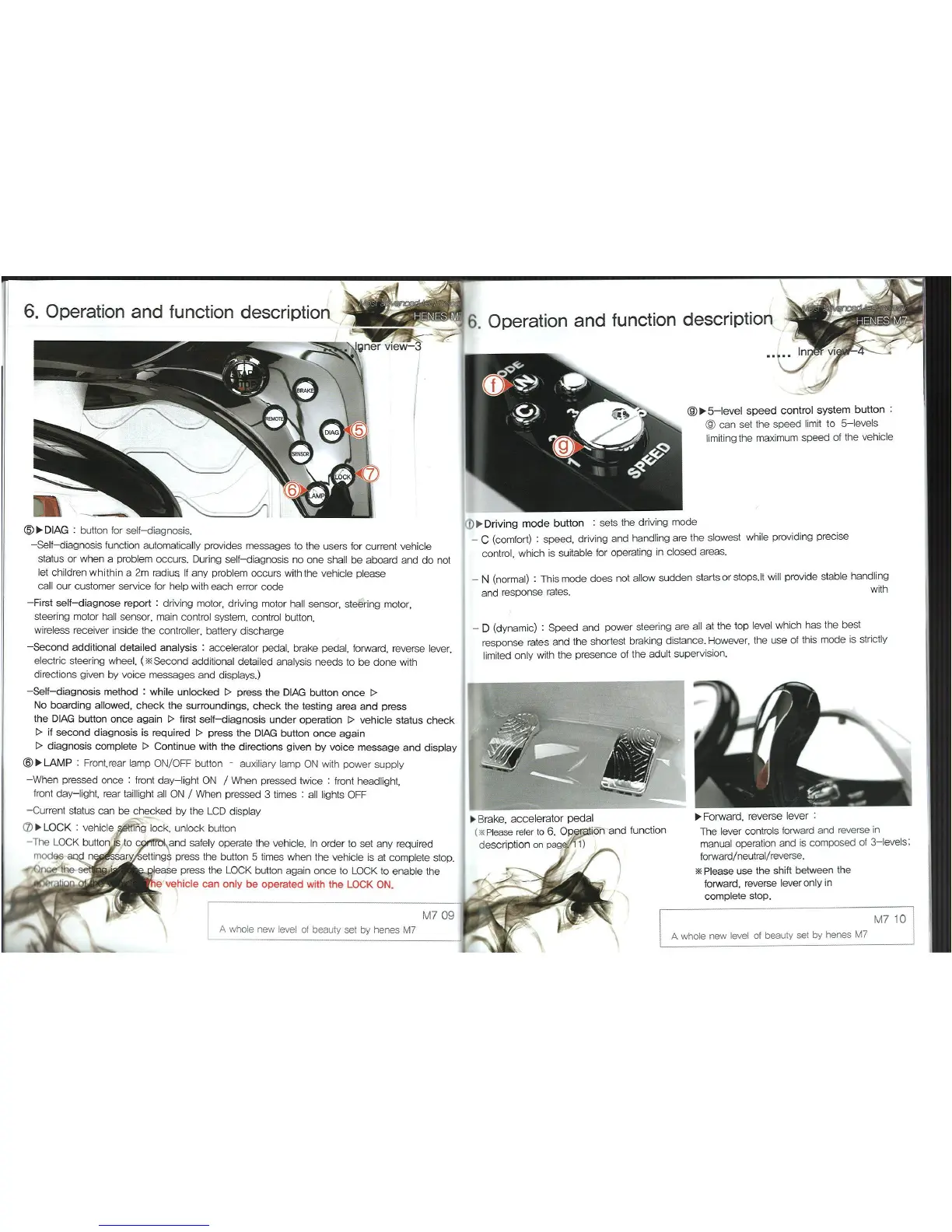 Henes M7 - Driving Modes and System Operations; Driving Modes and Speed Settings; Braking Systems and Lever Controls