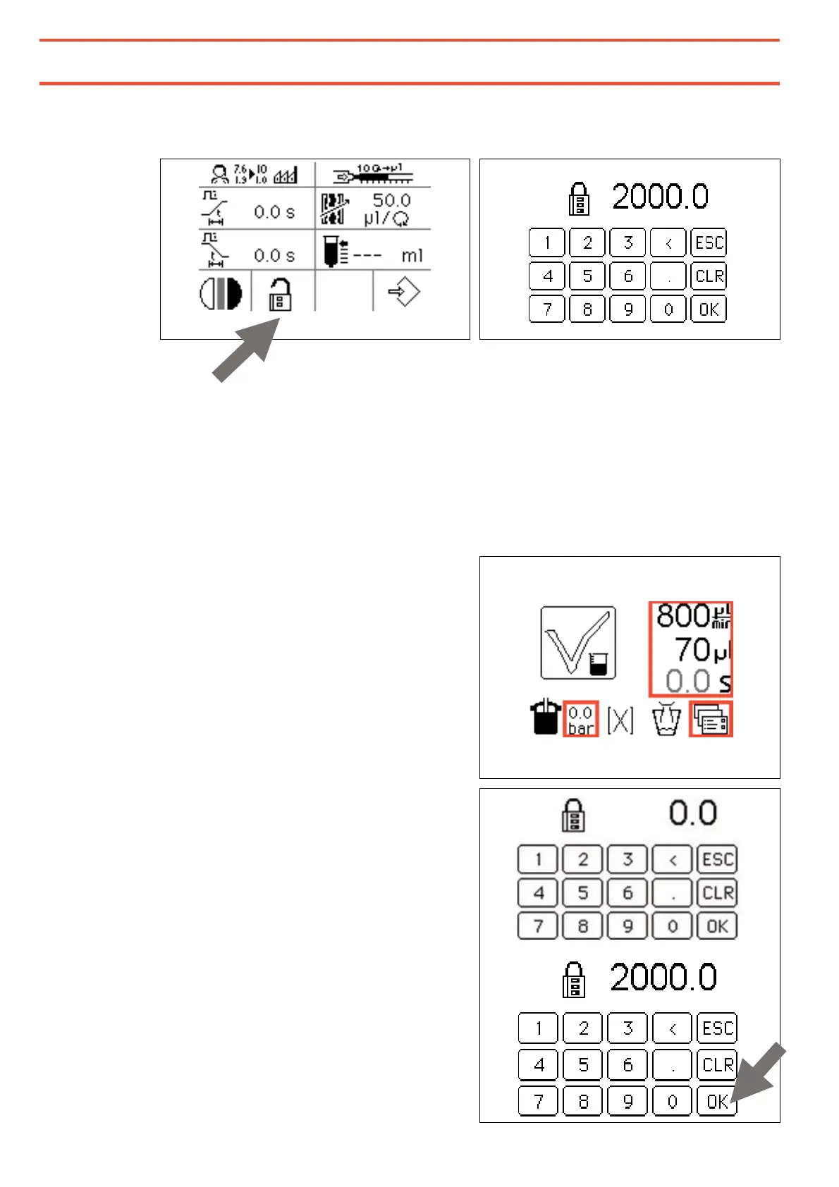 One gets to a screen for direct numerical value input. The key lock symbol is shown to remind what is going