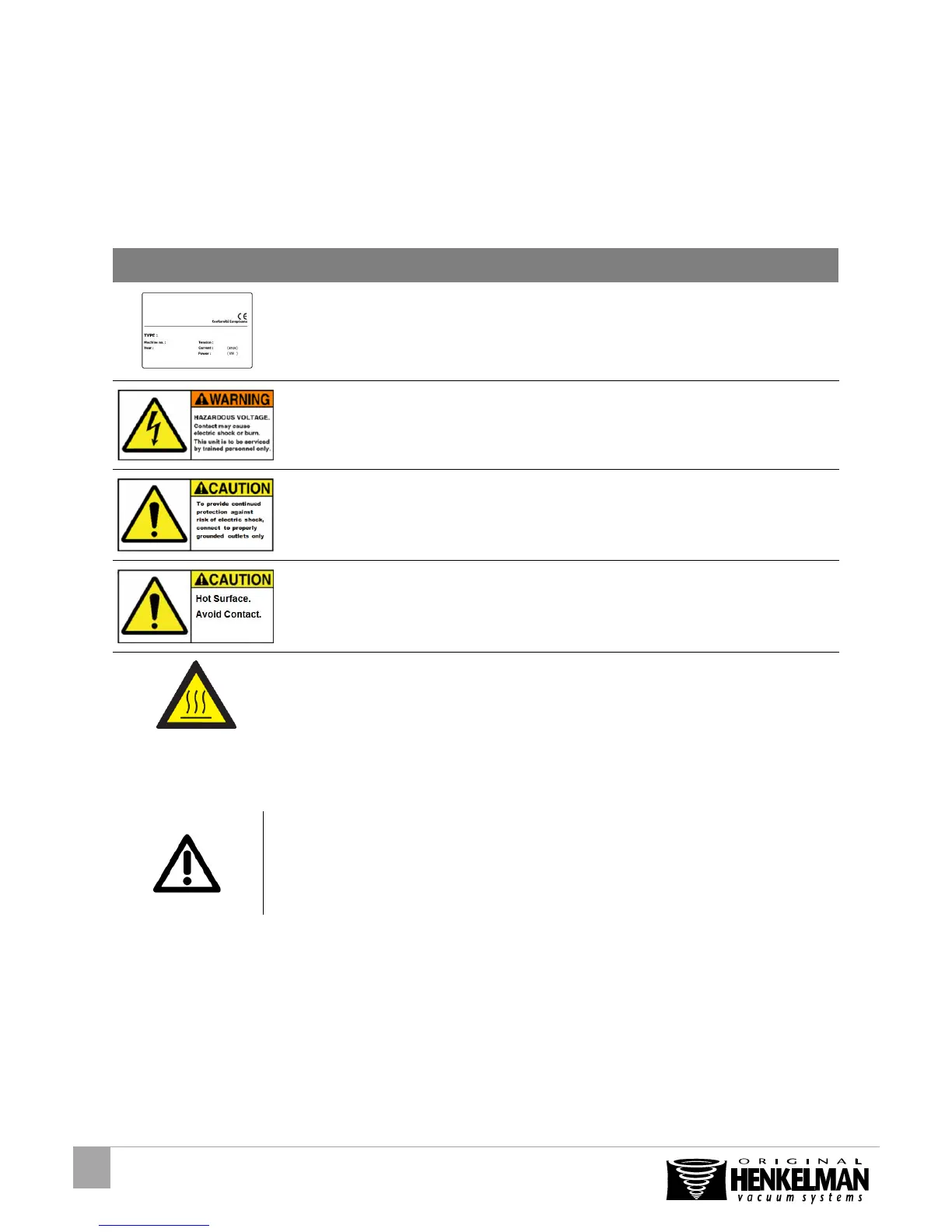 Some icons and warnings are included on the machine among others to indicate the possible risks