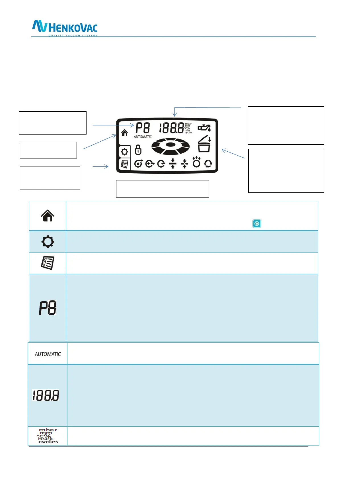 o Displays vacuum pressure in mbar (standard) or in % (for sensor-based applications)