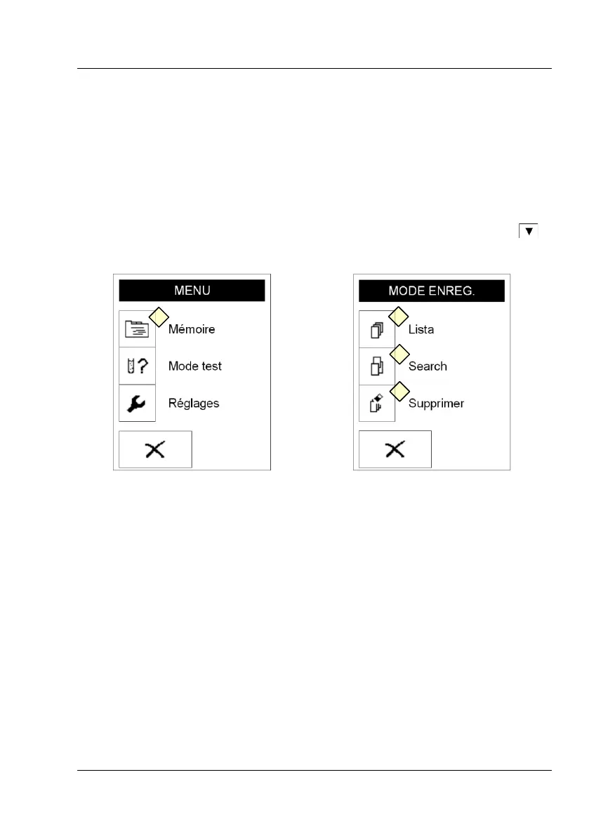 menu MÉMOIRE accessible depuis le menu principal en appuyant sur .