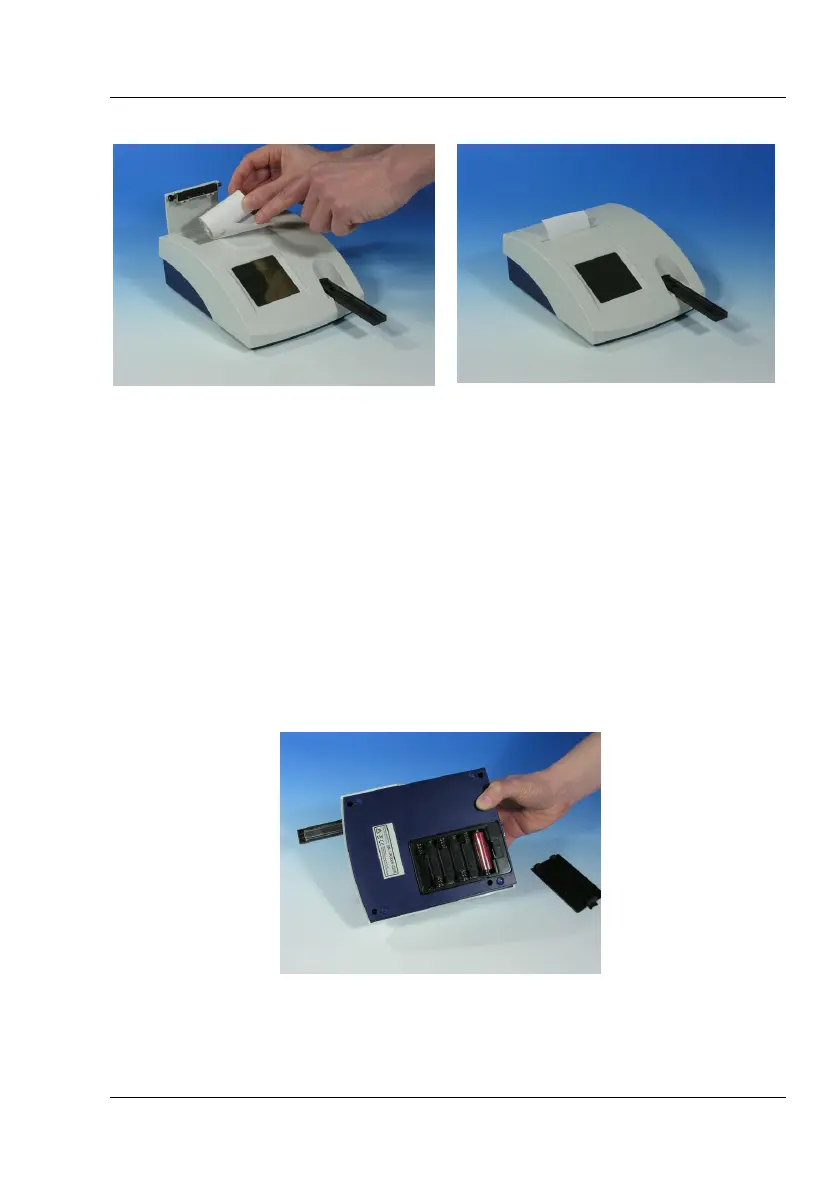 Papierfach legen. Beim Schließen der Klappe das abgerollte Papier mit
