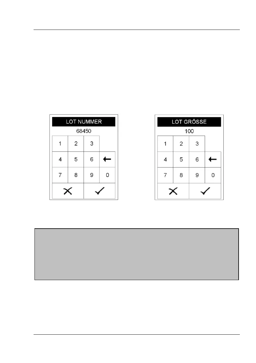 Bei Auswahl der „LOT Nummer“ wird ein Ziffernblock angezeigt über den
