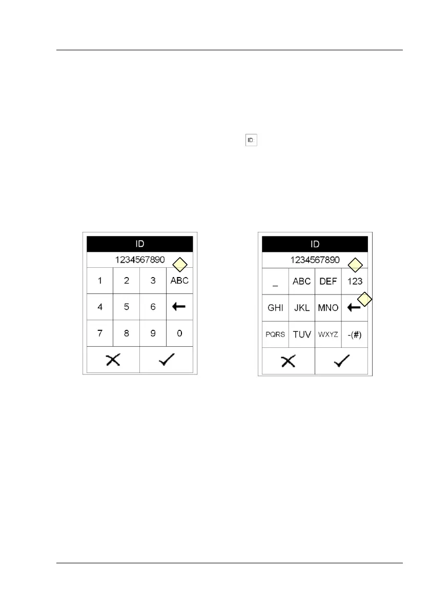 alphanumeric keypad. Enter the ID using the keys. To enter characters