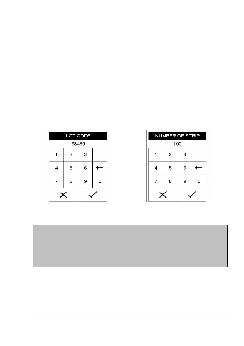 When selecting “LOT number“ a numerical pad will appear, which can be