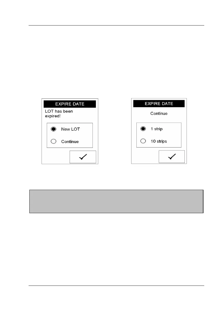 lote. Si la tira empleada está caducada, aparecerá un mensaje de alerta