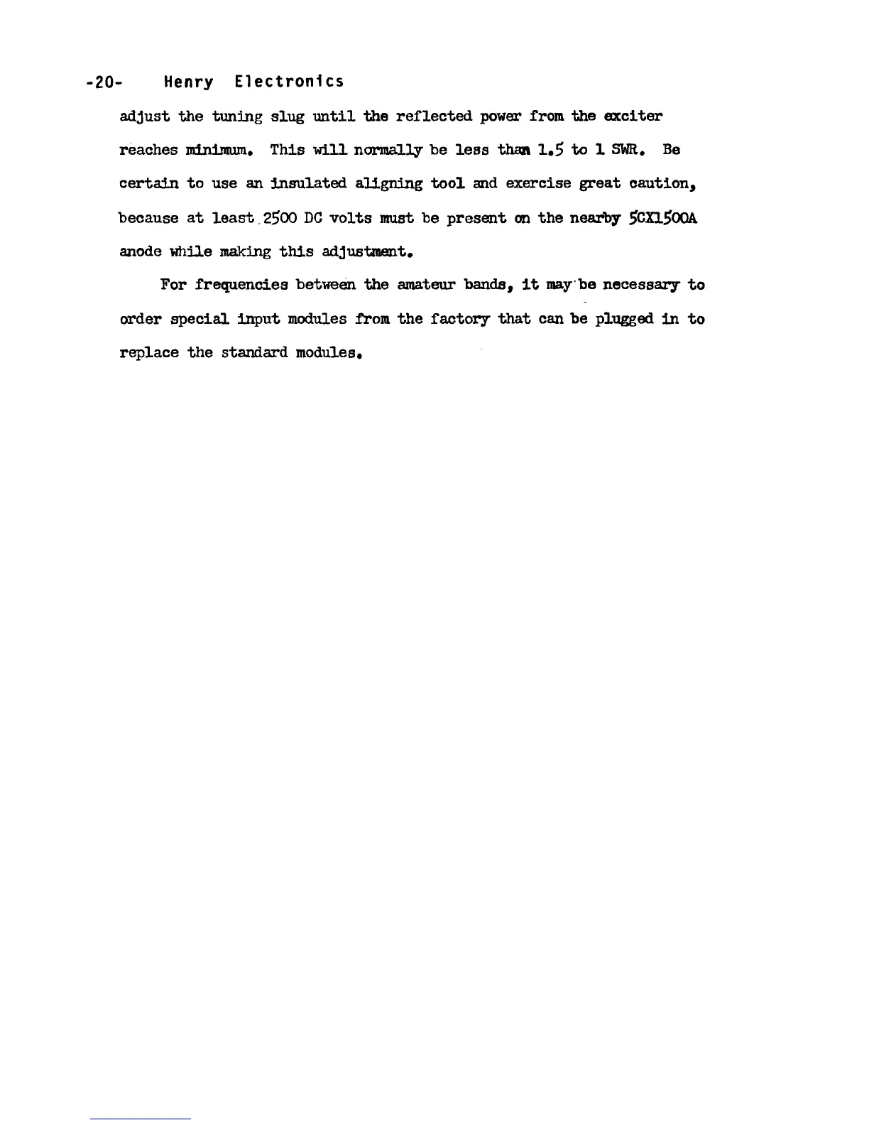 HENRY 4 K-2 - ADJUSTMENT OF PI-CATHODE INPUT-MATCHING MODULES