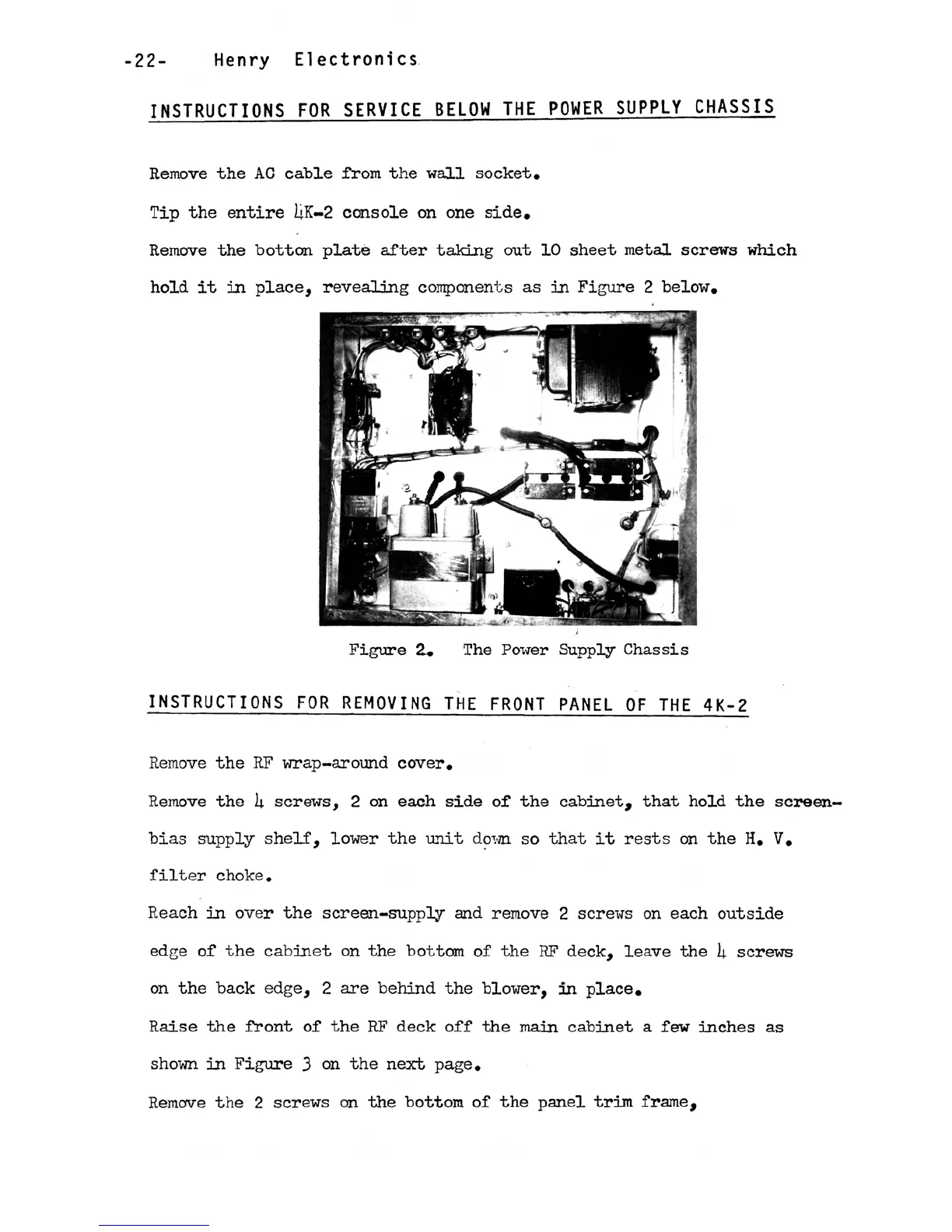 HENRY 4 K-2 - INSTRUCTIONS FOR REMOVING SCREEN AND CONTROL GRID BIAS SUPPLY