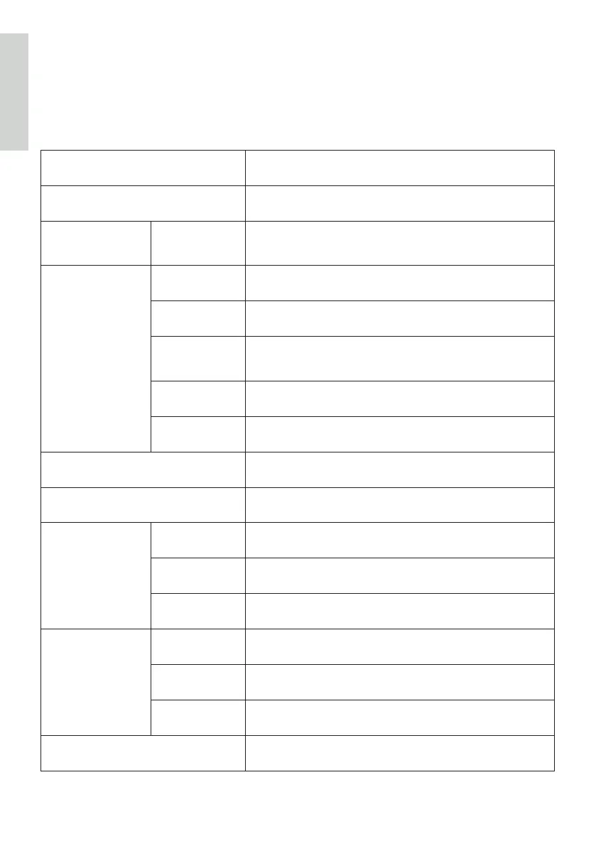 Size See the table on the next page