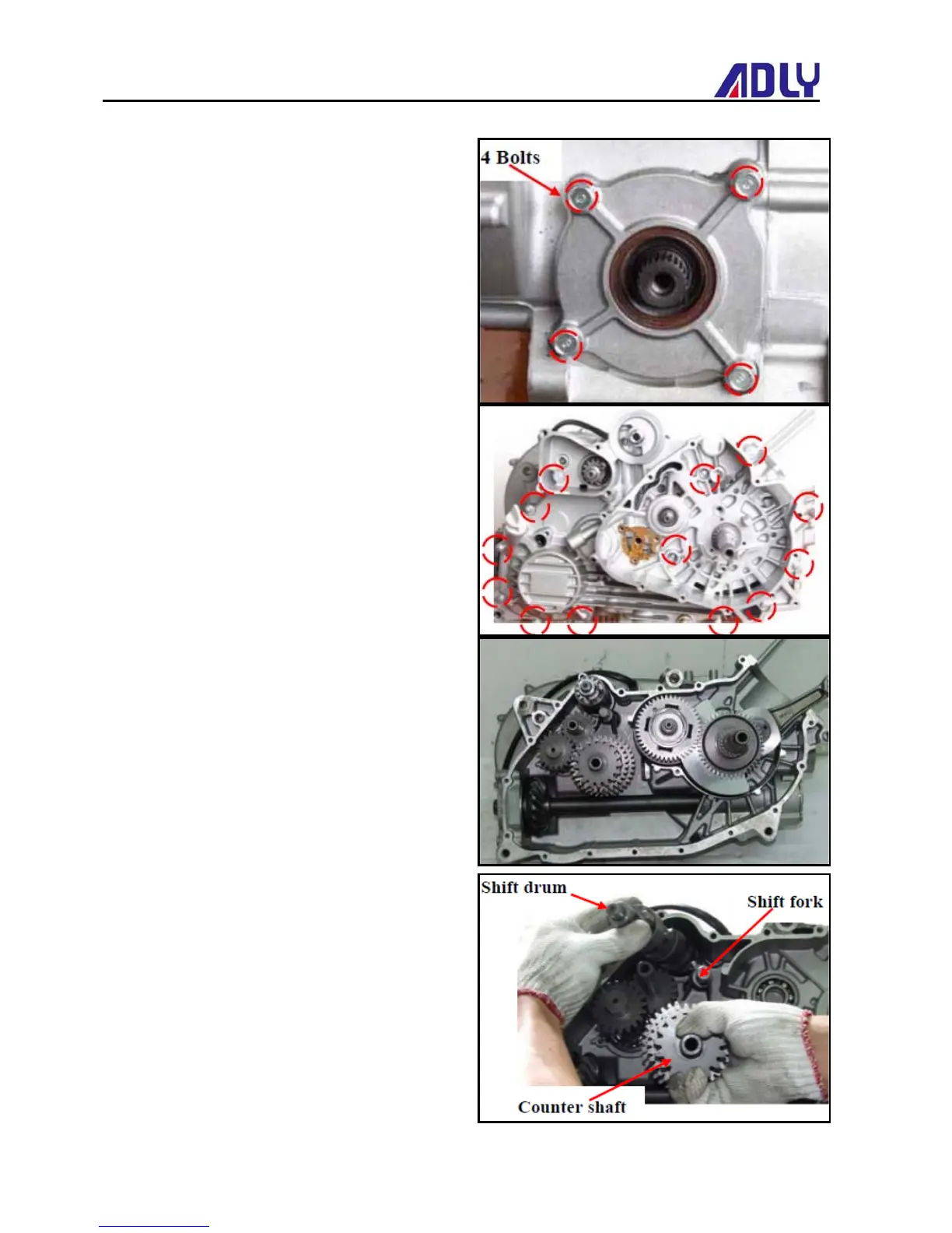 Remove the counter shaft, shift fork and the shift