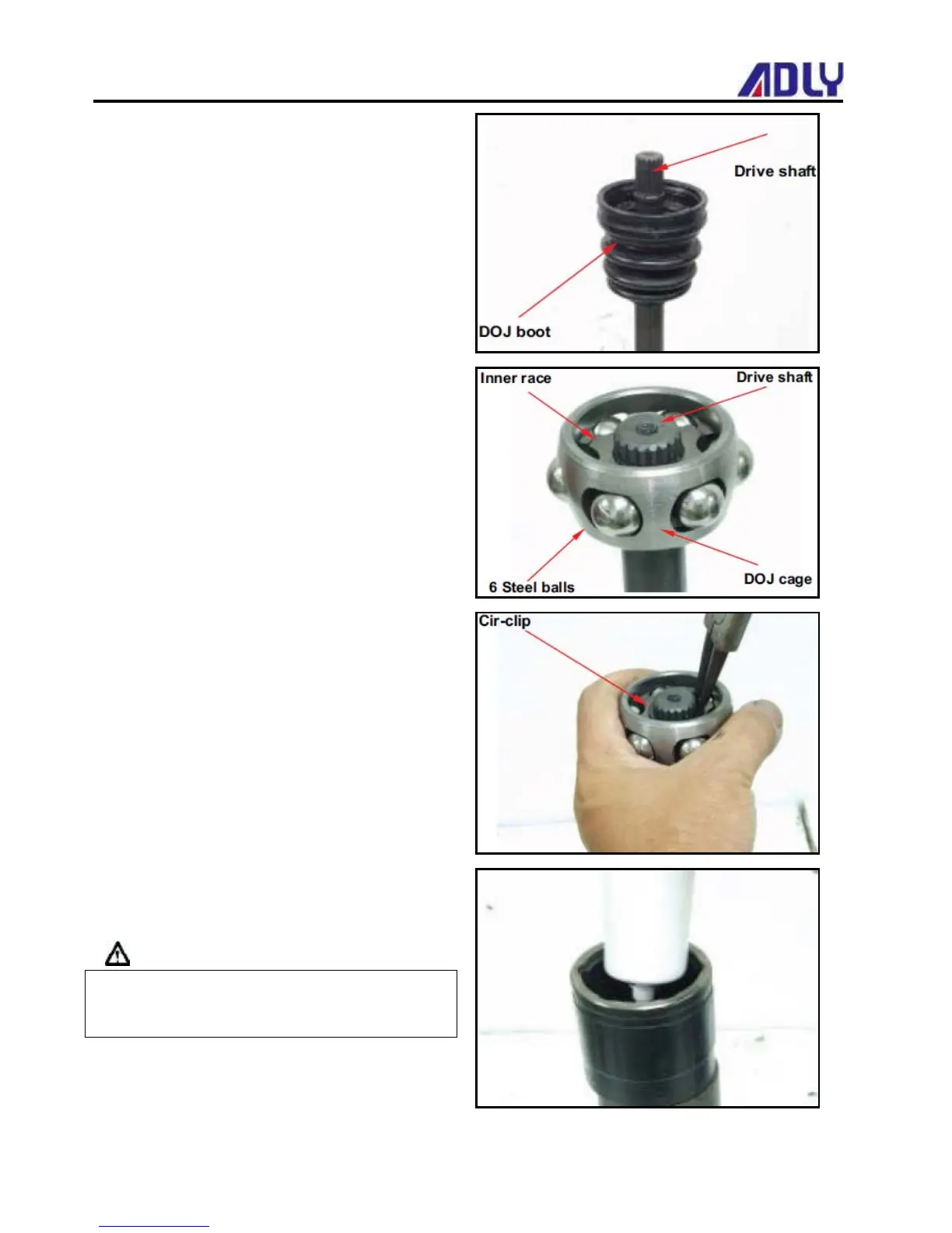 Assemble exit cir-clip onto drive shaft.