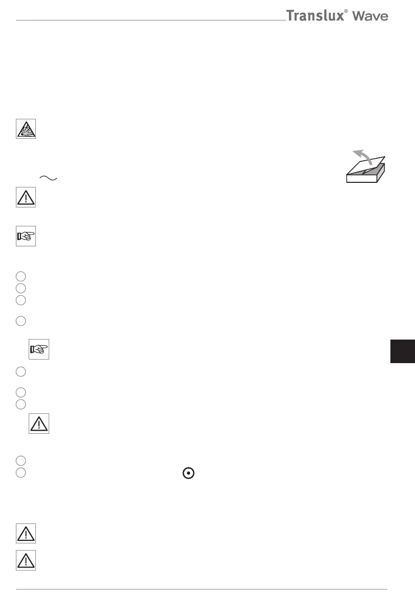 med netspænding. Når stikket er tilsluttet skal ledningen kunne nås. Apparatet skal have luft omkring sig.