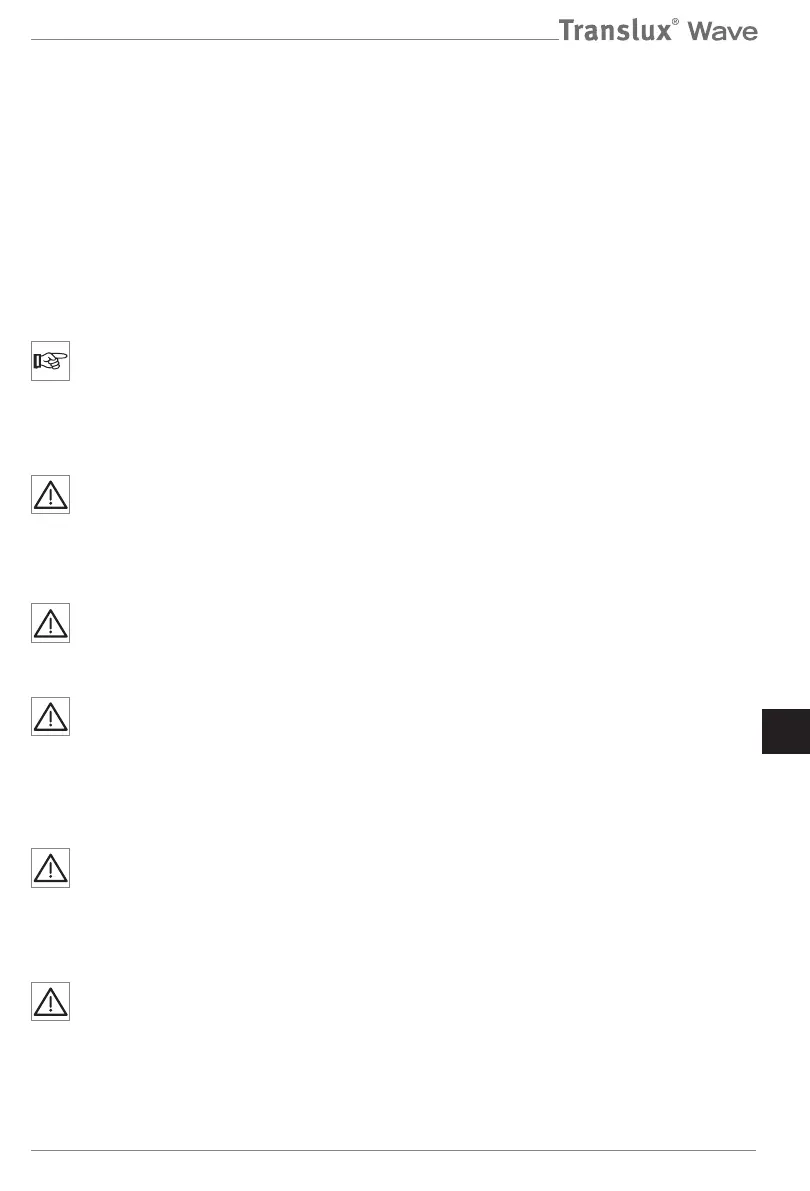 Brukeren er ansvarlig for å teste Translux Wave med hensyn til bruk og egnethet for tiltenkte formål.