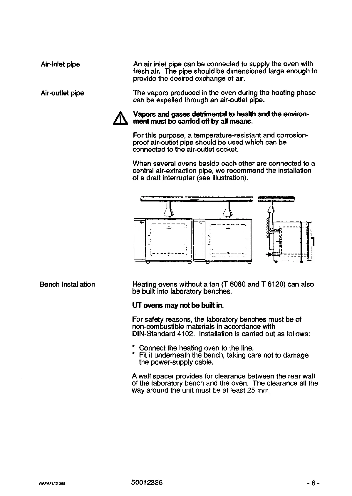 Bench installation Heating ovens without a fan (T 6060 and T 6120) can also