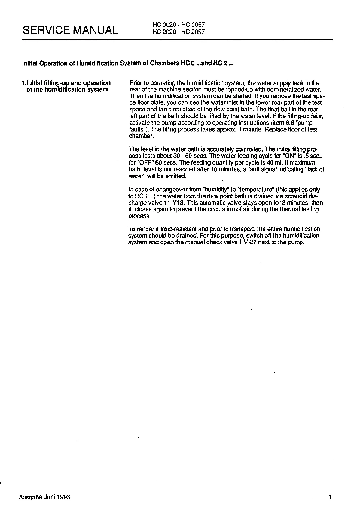 Initial Operation of Humidification System of Chambers HC 0 ...and HC 2...