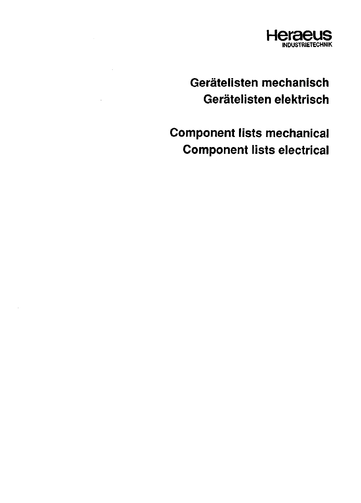 Heraeus HC 0057 - Component Lists; Electrical Component Lists