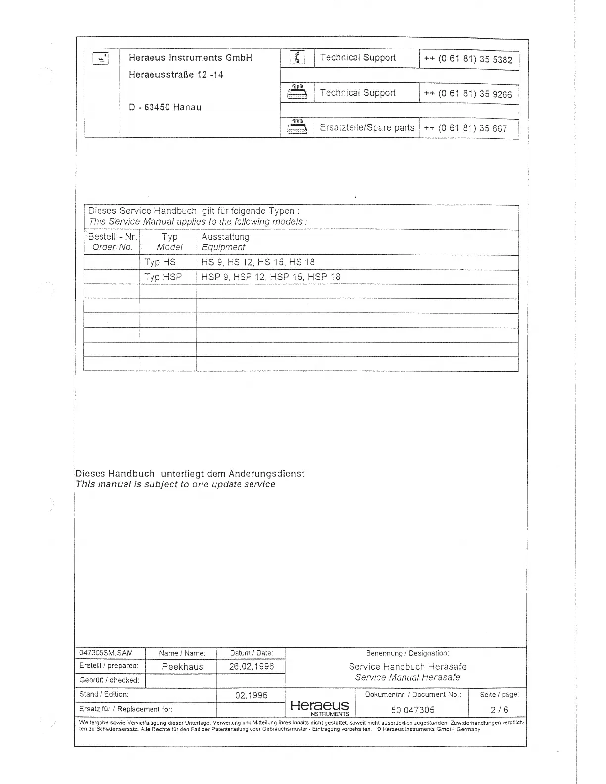 Heraeus HSP 18 - Page 2
