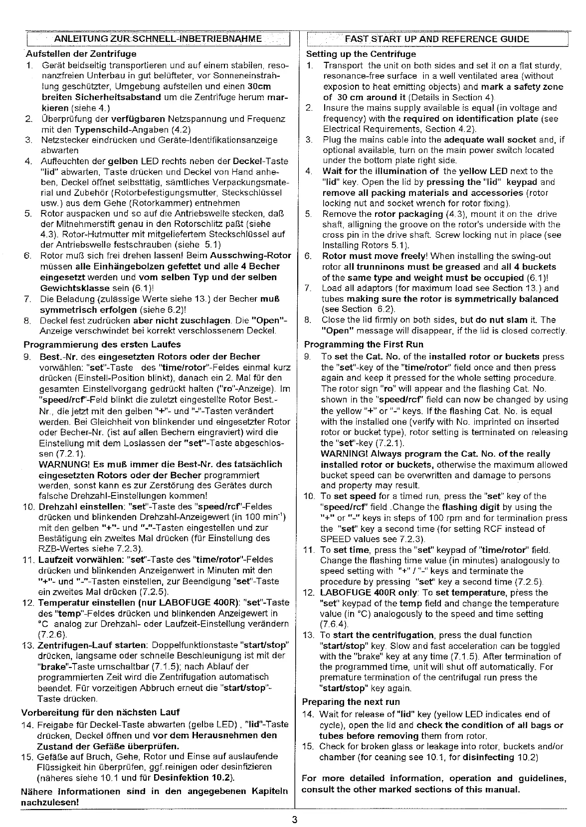 Heraeus LABOFUGE 400e - Anleitung zur Schnell-Inbetriebnahme
