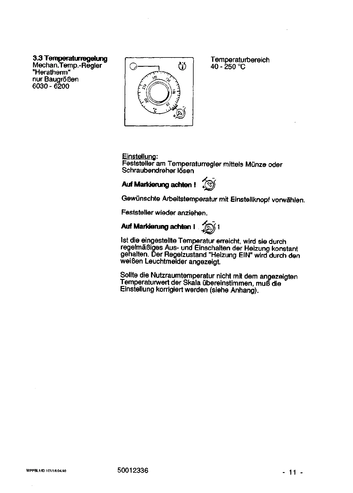 Gewunschte Arbeitstemperatur mit Einstellknopf vorwahlen.