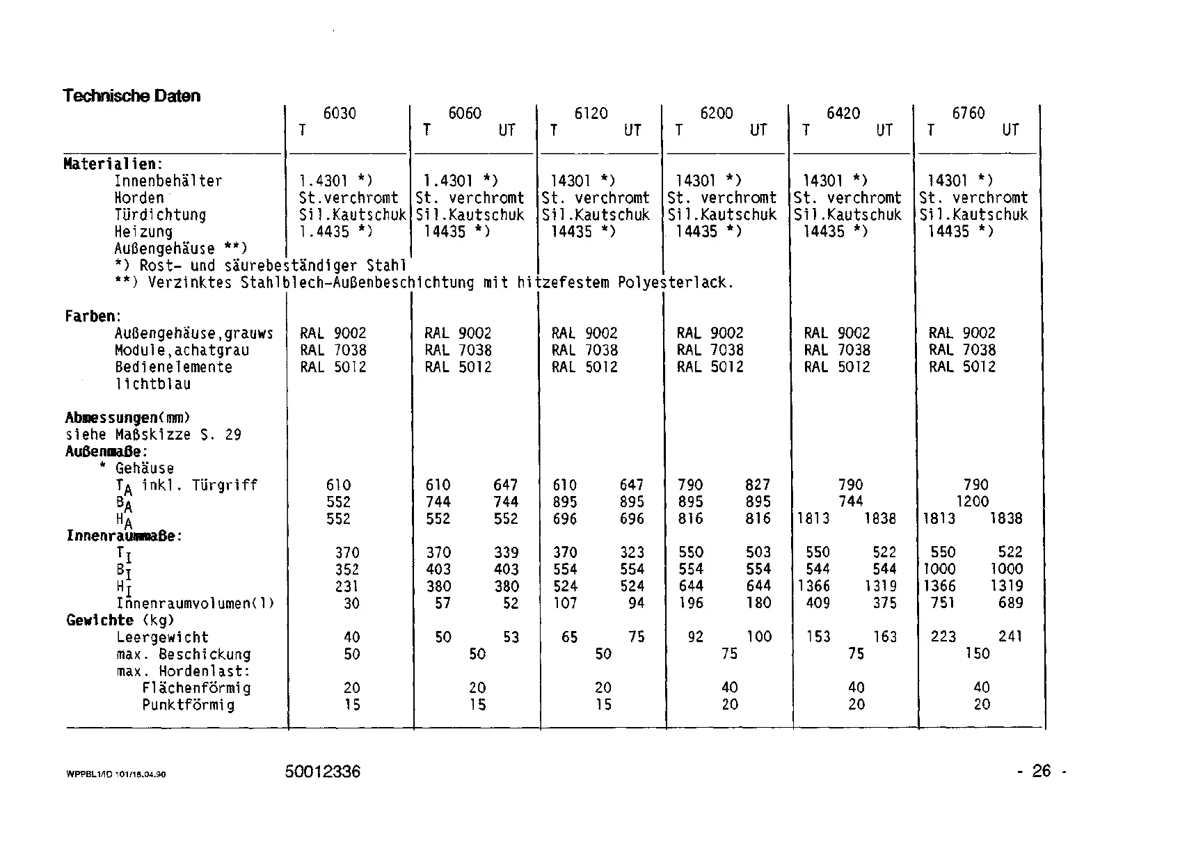 Heraeus T 6120 - Technische Daten; Mabskizze