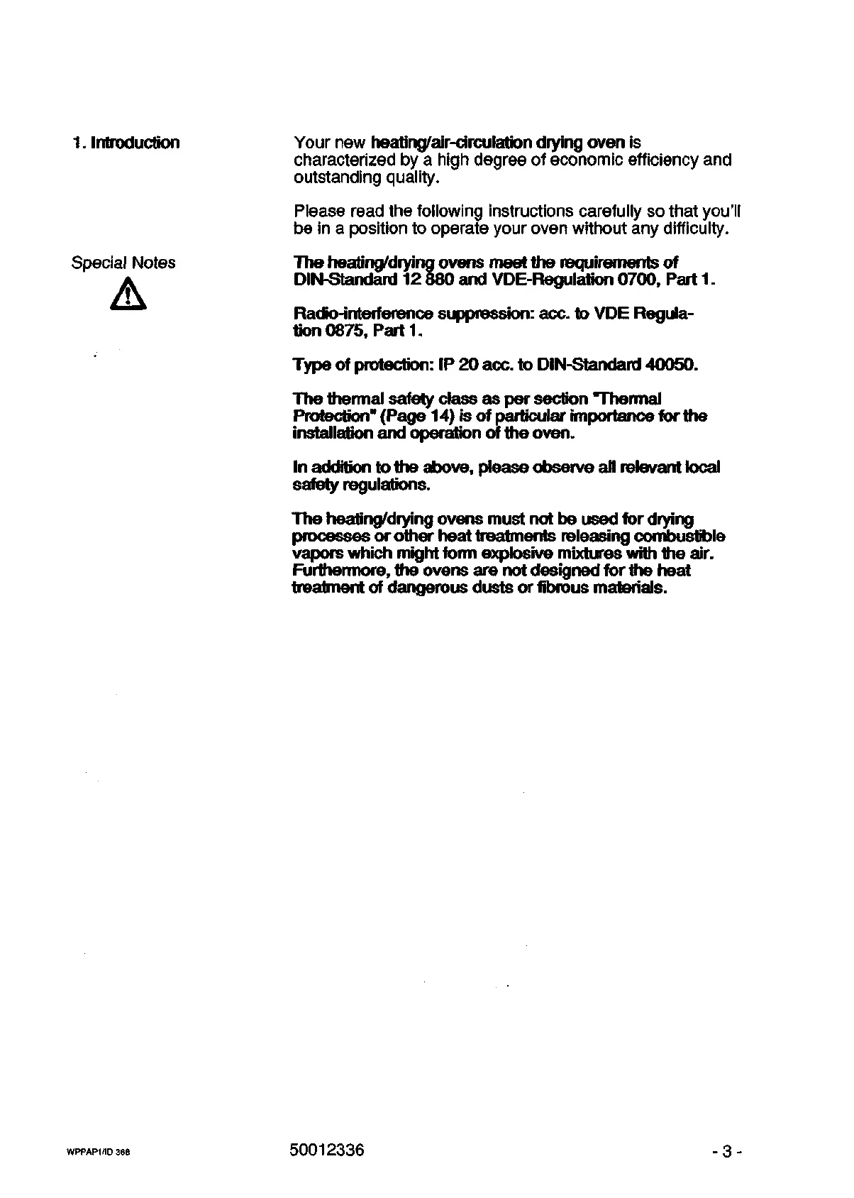 Special Notes The heating/drying ovens meet the requirements of