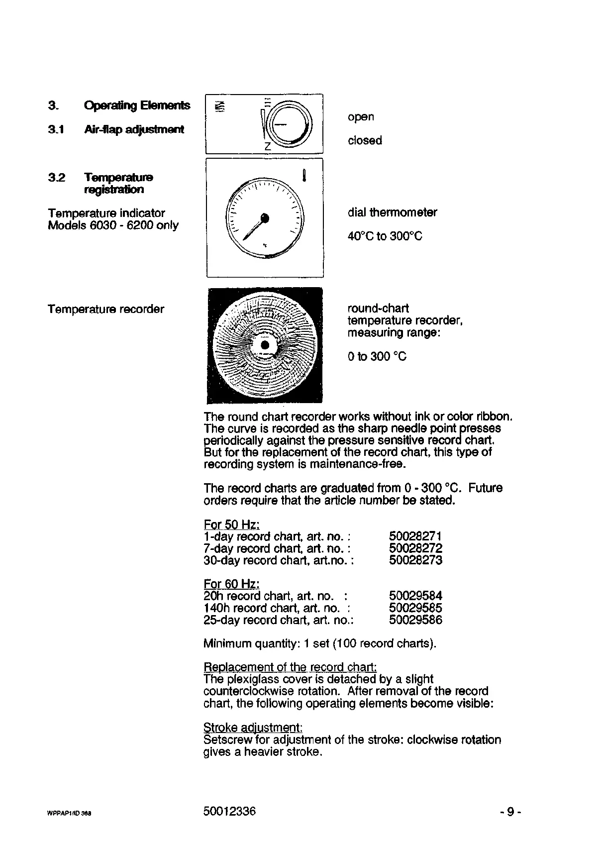 Heraeus T 6120 - 3 Operating Elements; Air-Flap Adjustment; Temperature Registration