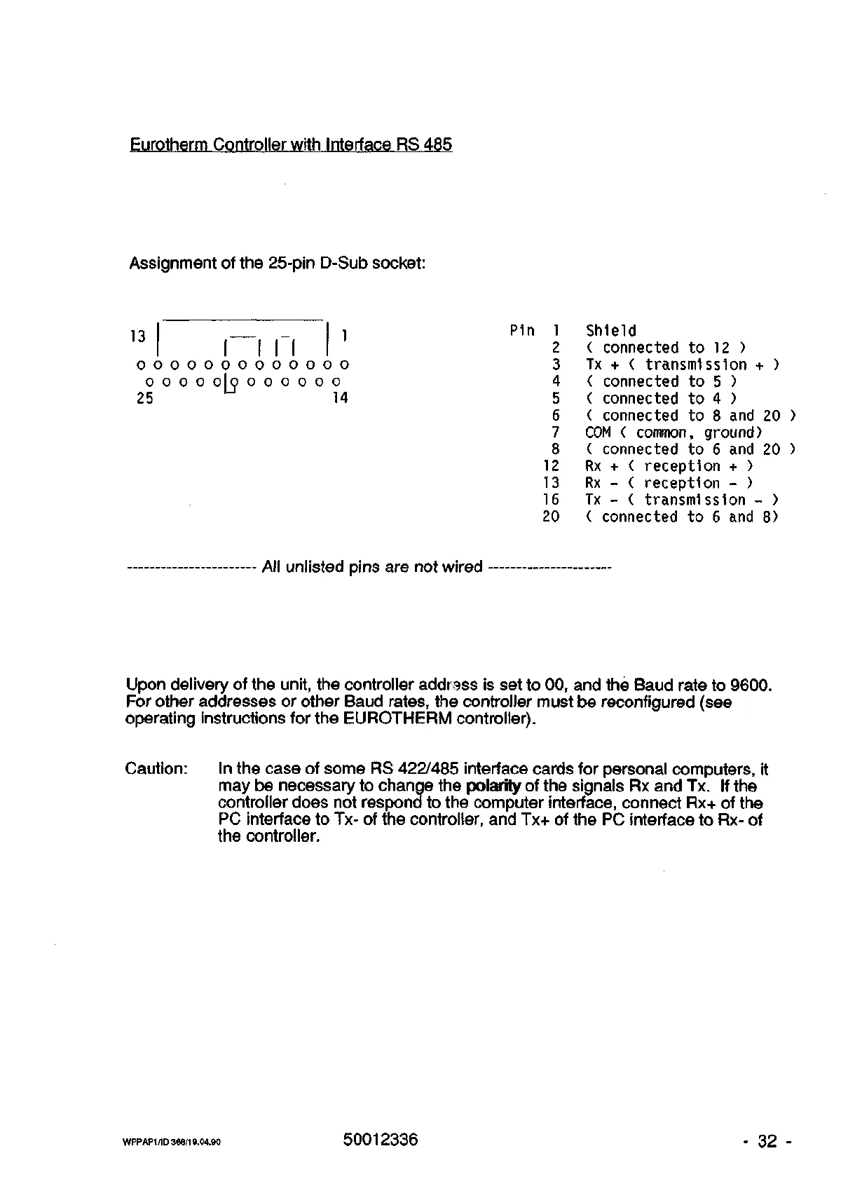 other Baud rates, the controller must be reconfigured (see