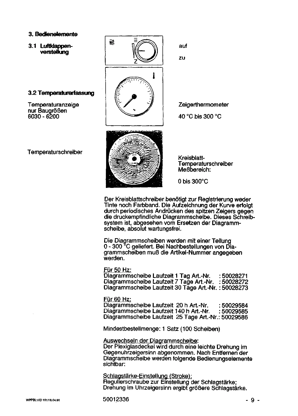 Heraeus T 6120 - 3 Bedienelemente; Luftklappenverstellung; Temperaturerfassung