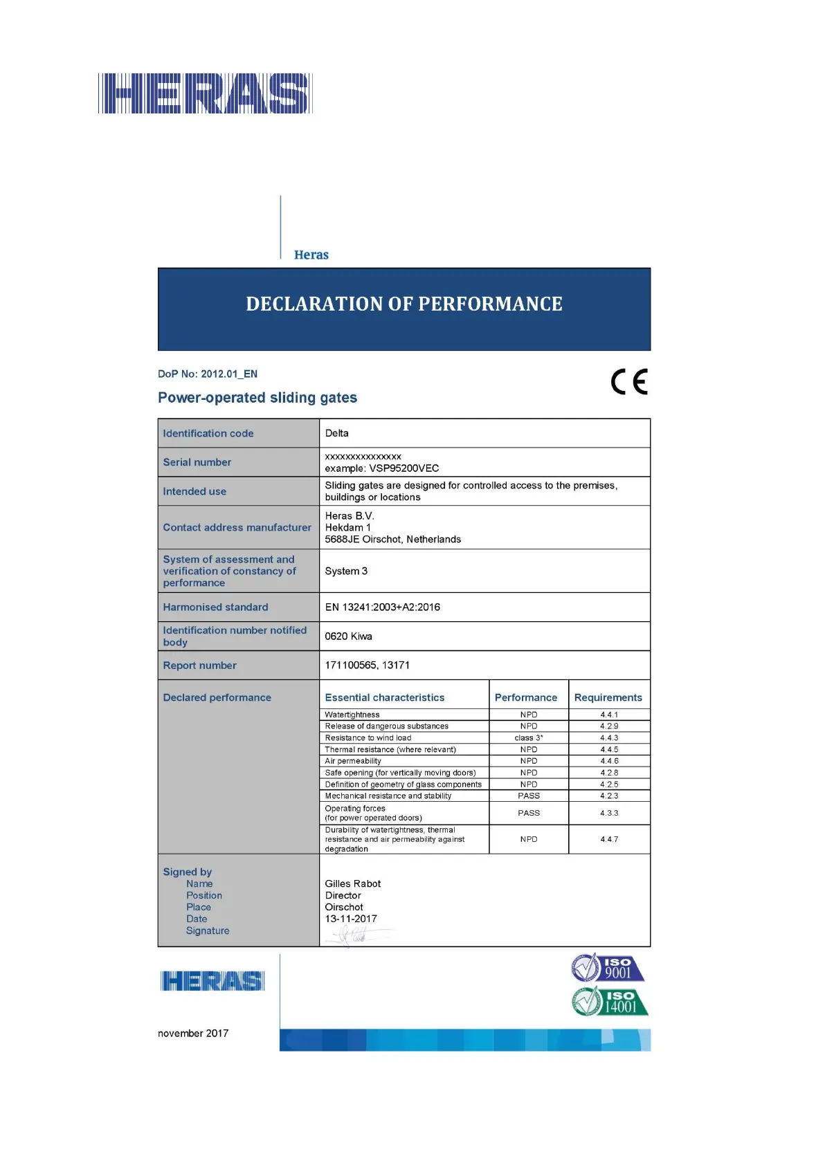 Heras HMD Basic - Appendix A: Declarations Dop; Doc