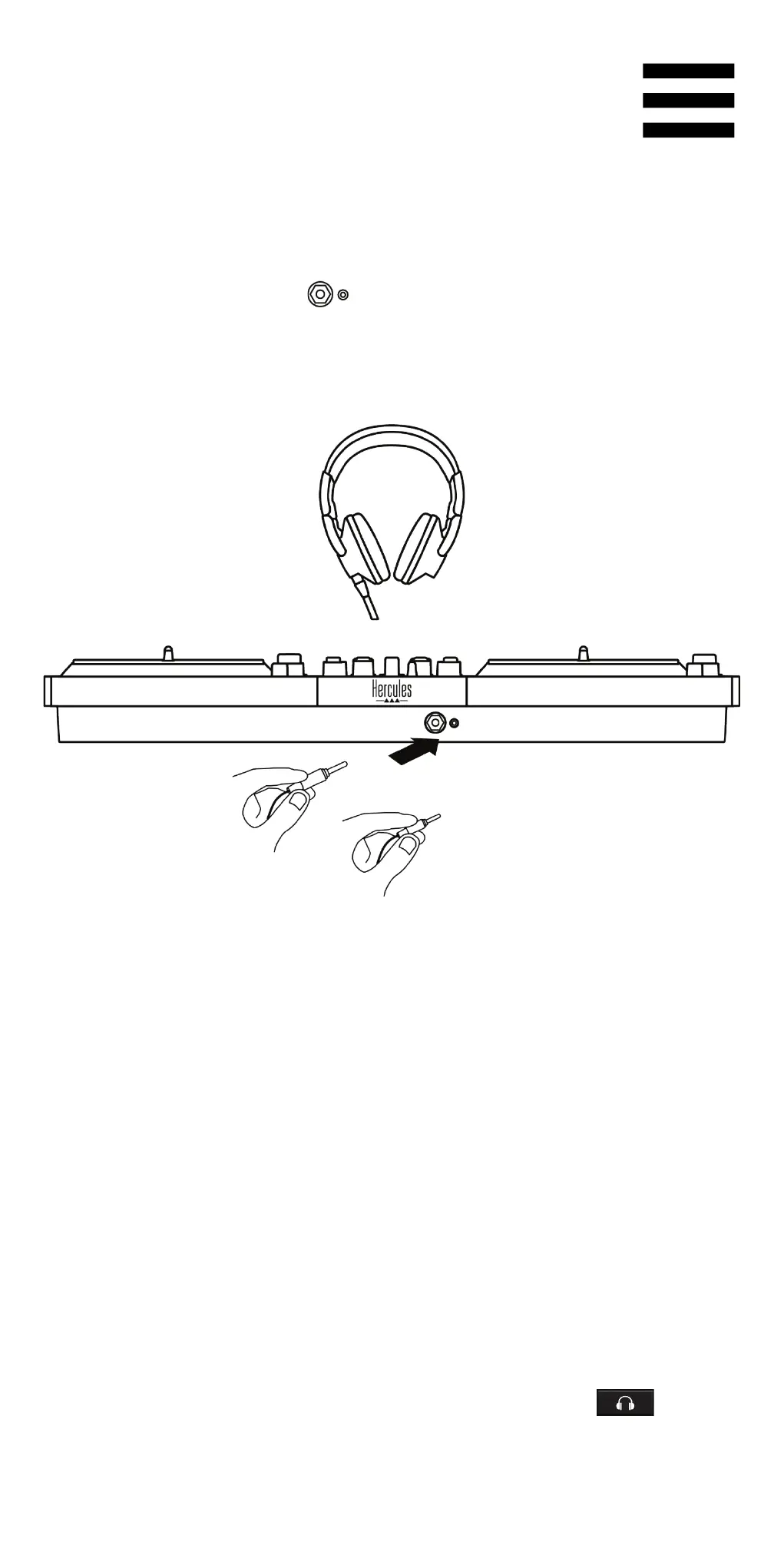 the headphones output. To do so, press the button