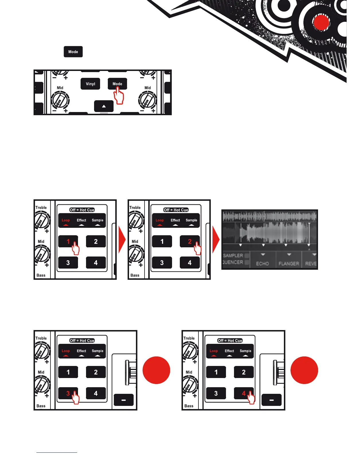 DJUCED™ plays a part of the track as a loop. Press button 2 to exit the loop and return to