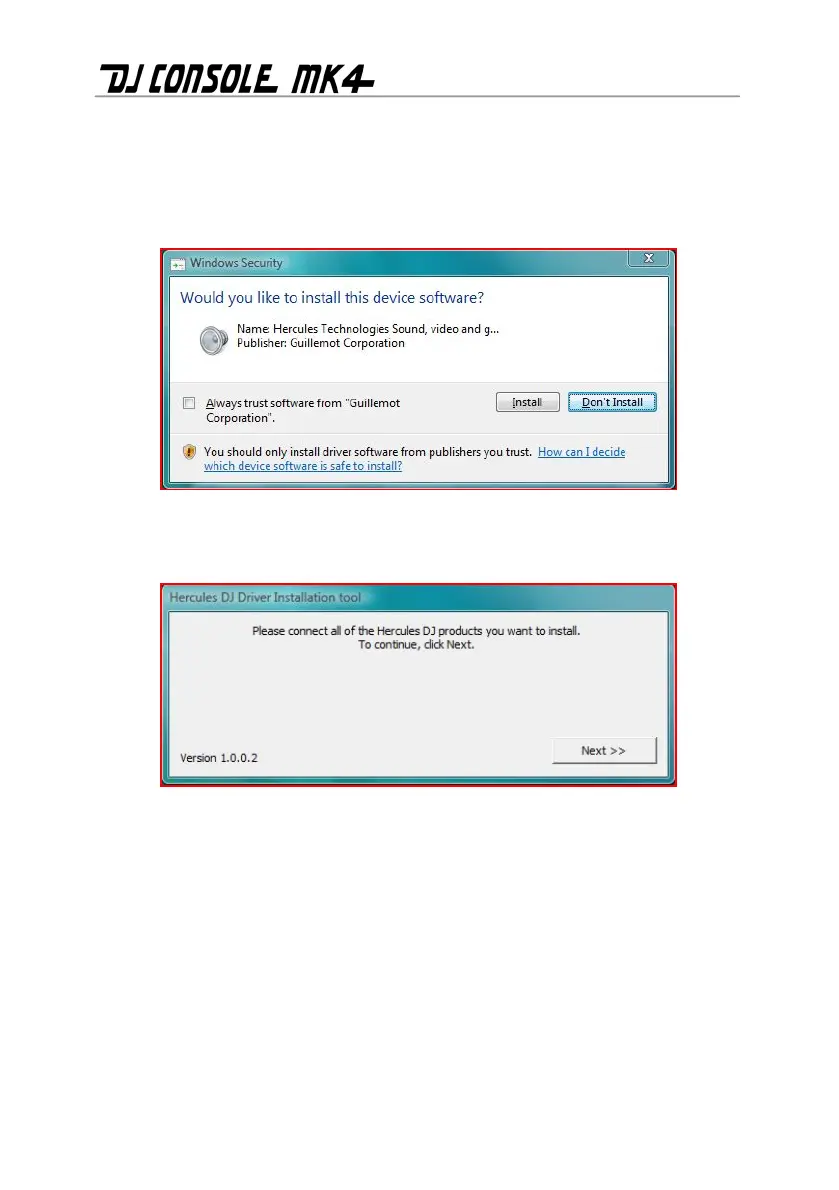 Your computer automatically detects the DJ Console Mk4 and completes the installation of the