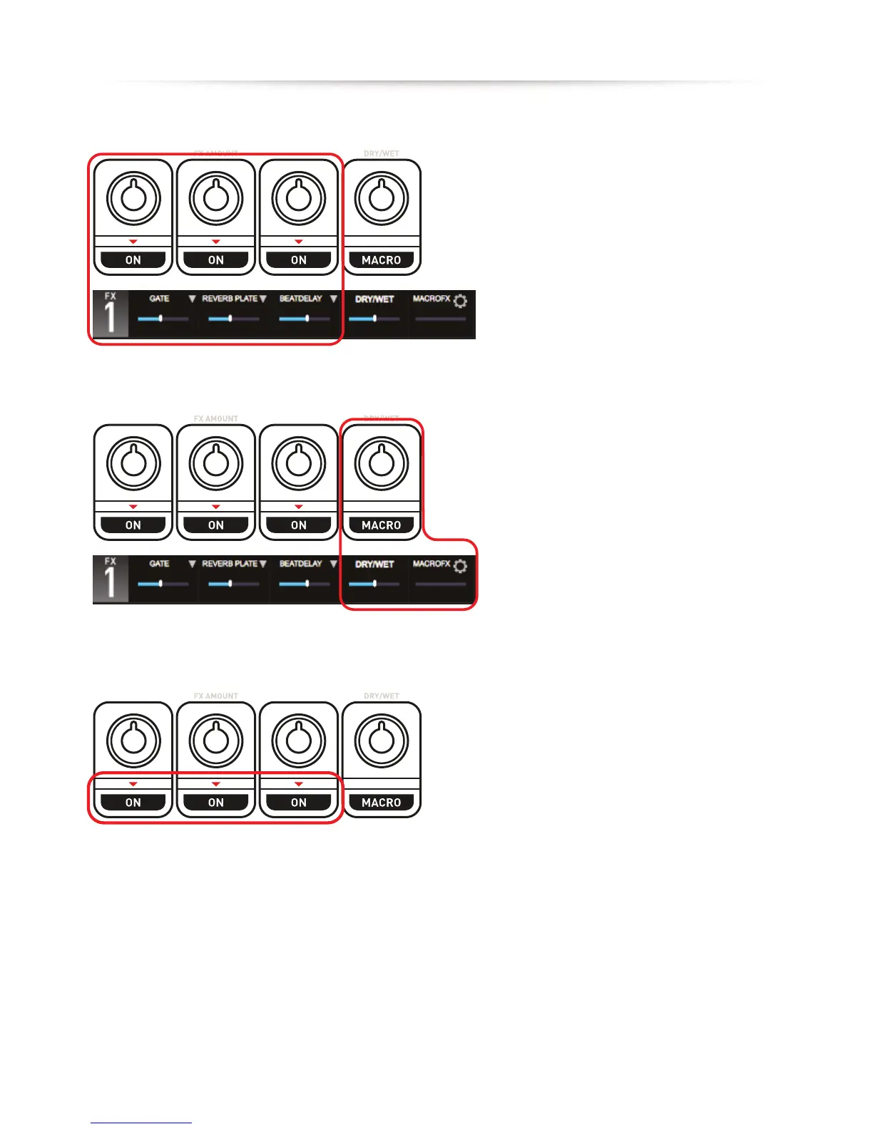 (Fx Amount on the knob, Fx ON/OFF on the button).