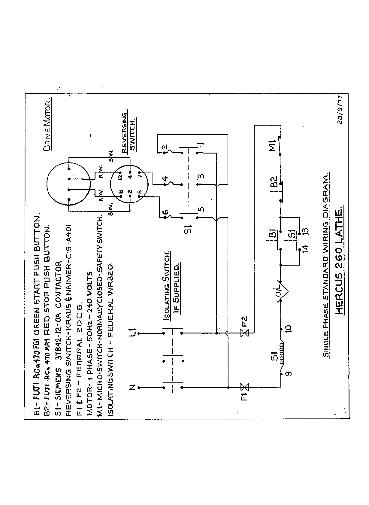 Hercus 260 - Single Phase Standard Wiring Diagram