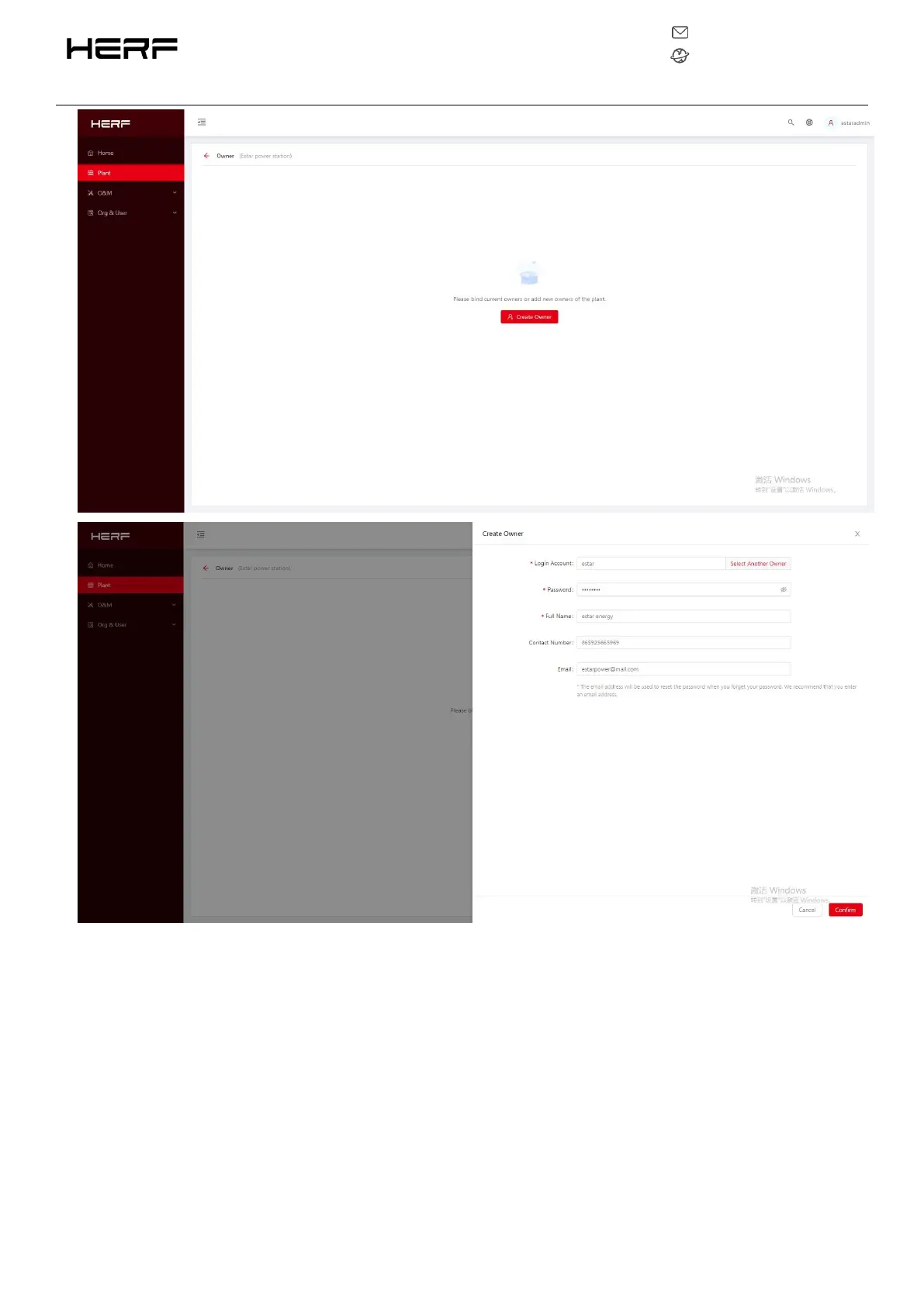 2)Enter the account, password, and full name that you want to create, and click Confirm to determine.