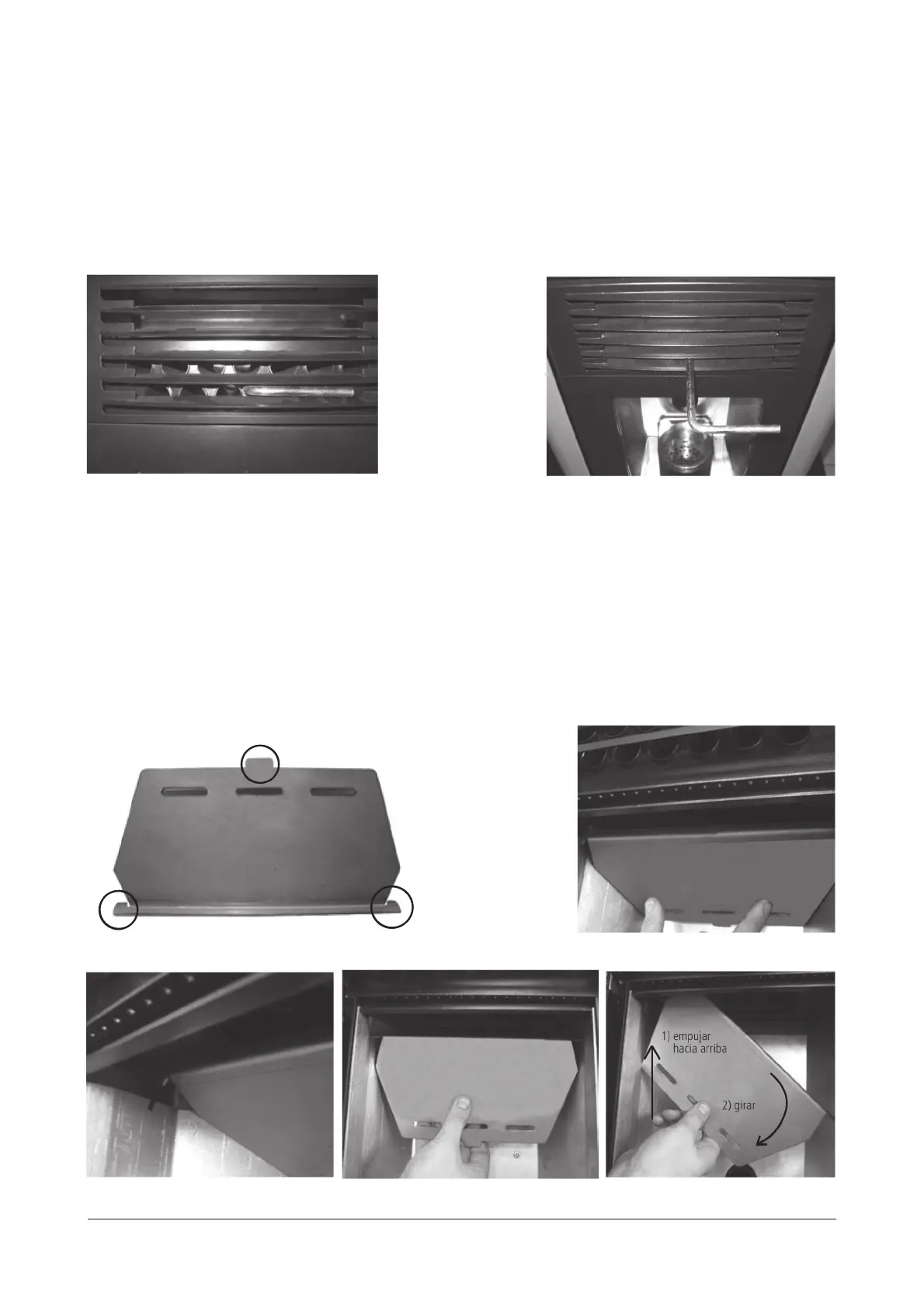 Quitar con un aspirador toda la ceniza depositada en la parte superior. Despues, montar la placa cortafuego y asegurar