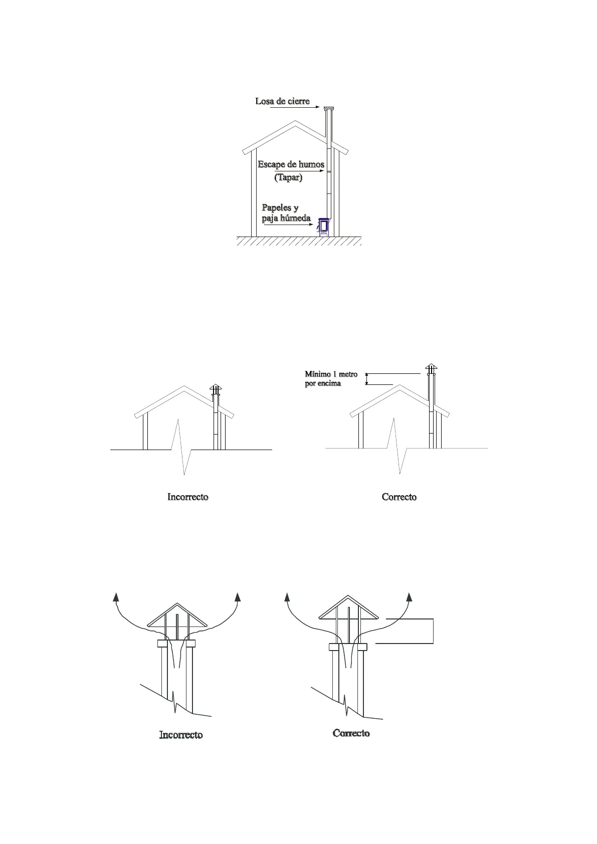 g) Es muy importante que la chimenea sobrepase un metro la parte más alta de la