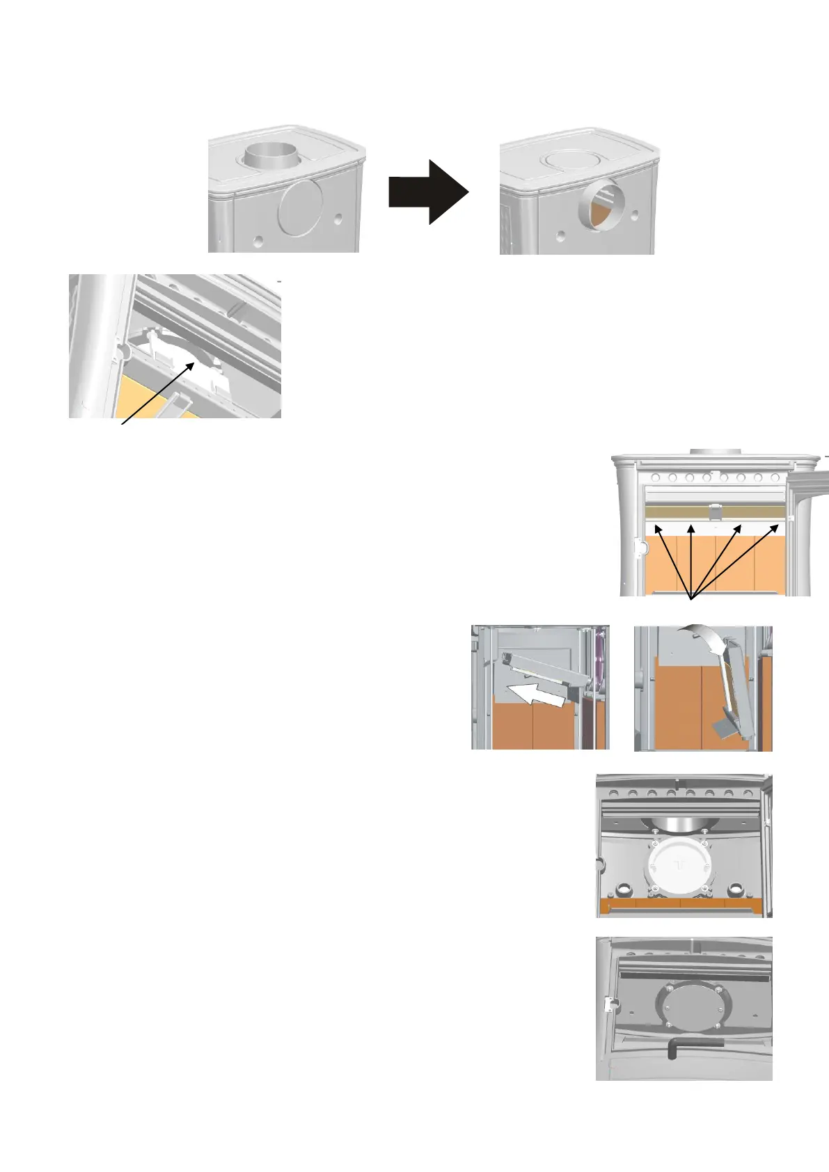 Si prefiere que la chimenea tenga la salida de humos por la trasera, deberá realizar las siguientes