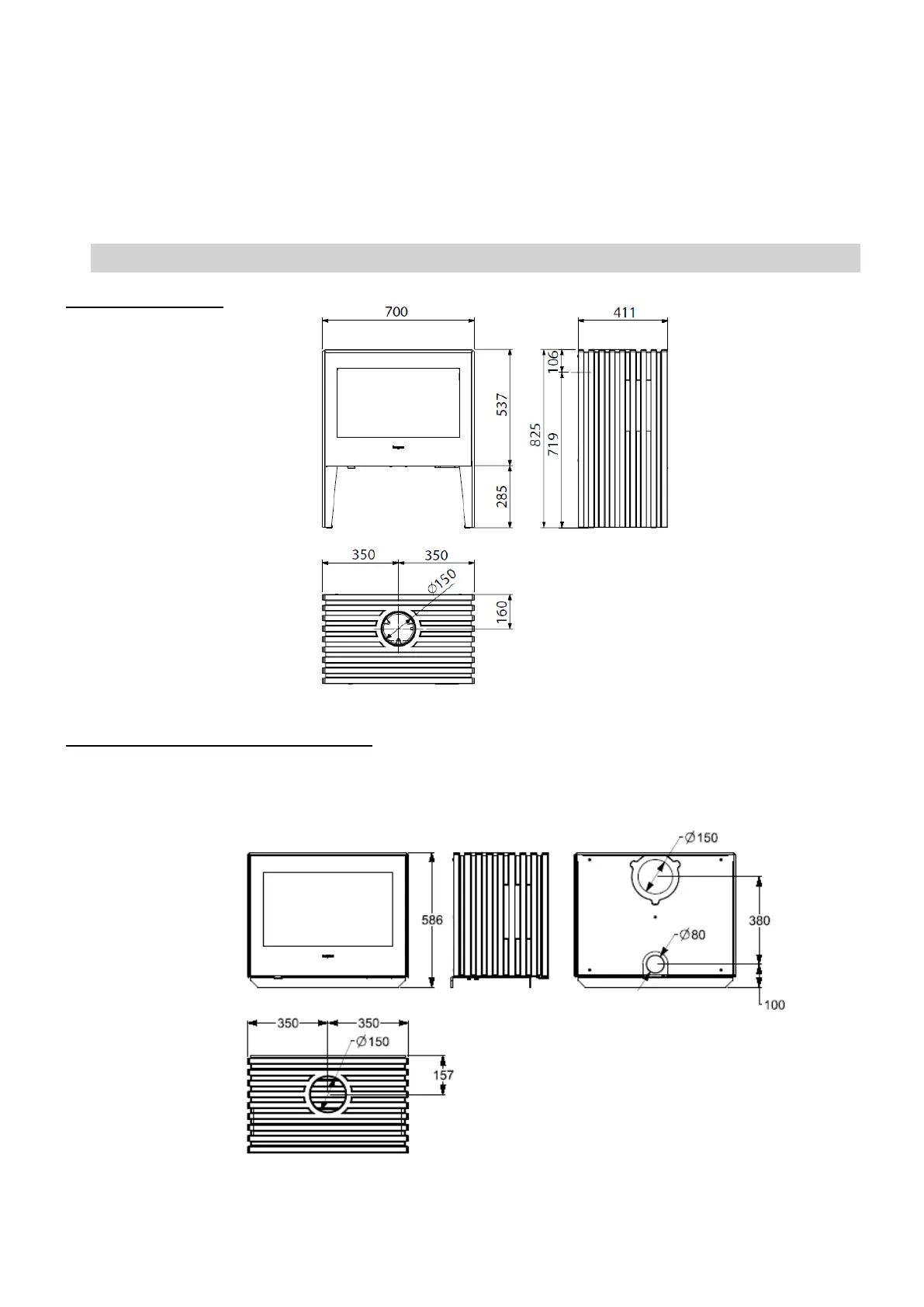 • Optional outside air connection located on the back of the ash pan to supply air to firebox is 80mm