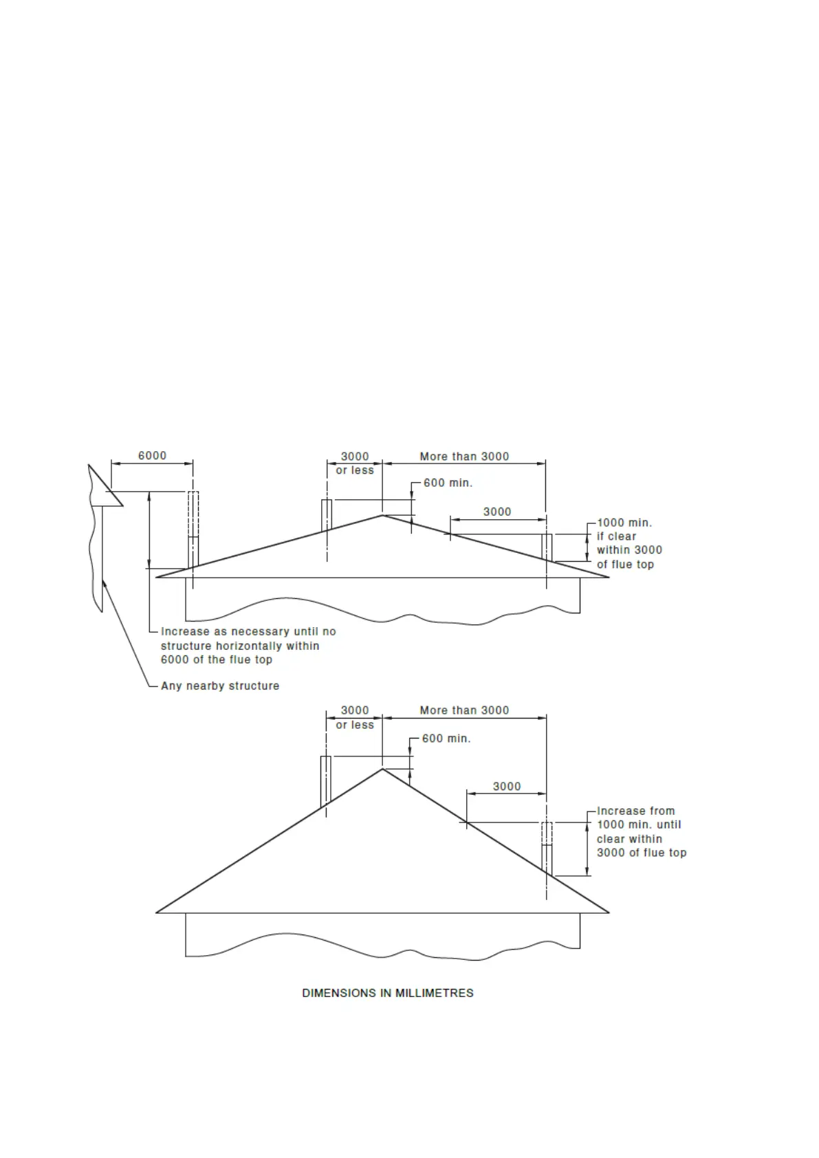 NOTE: Flue exit MUST also be as high as any nearby structure within a 6m Radius. (AS/NZS 2918:2018)